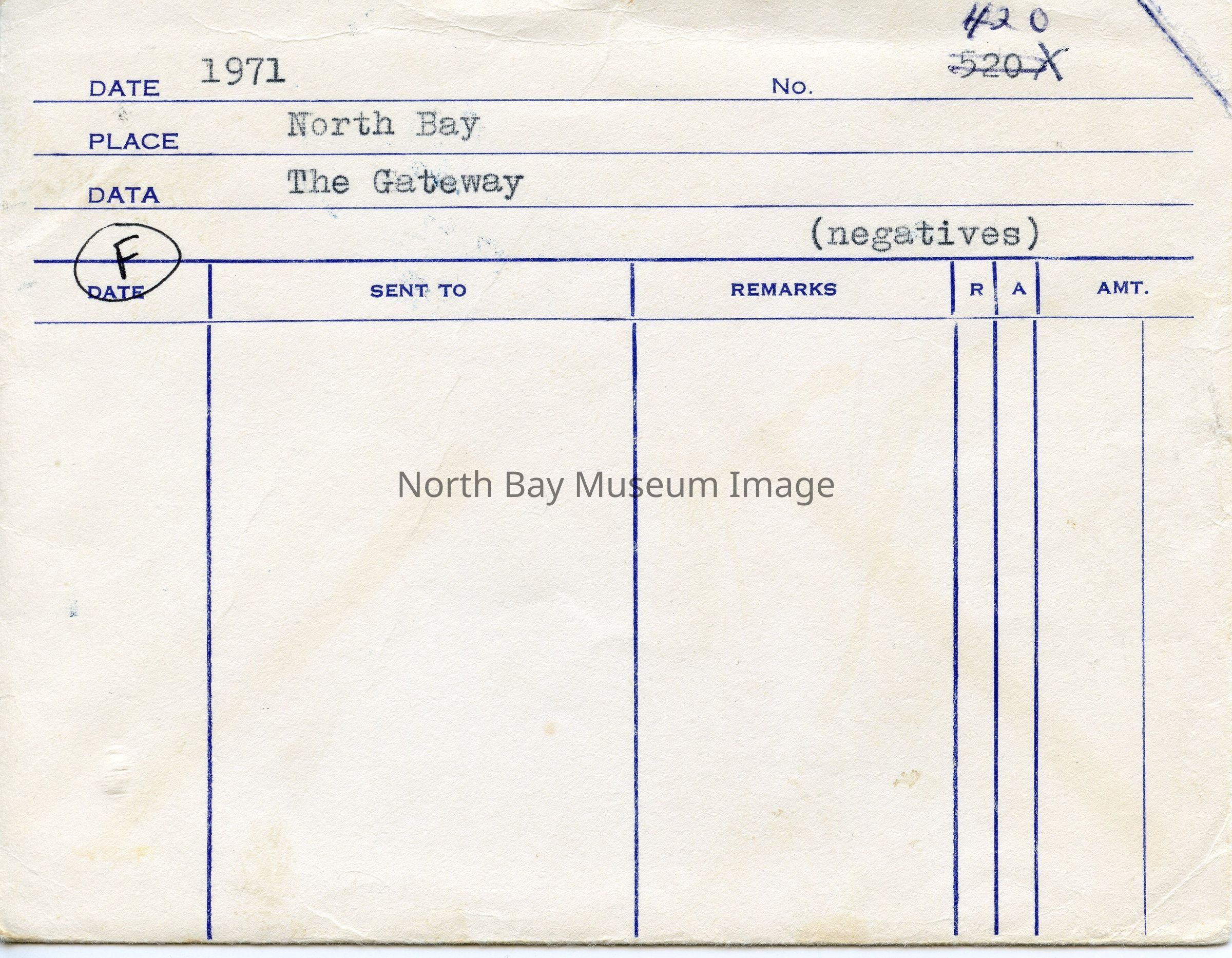 William Forder's original photographer's envelopes (a-d) with negatives of various views of the North Bay Gateway Arch in Lee Park. Places published are listed on the envelope.