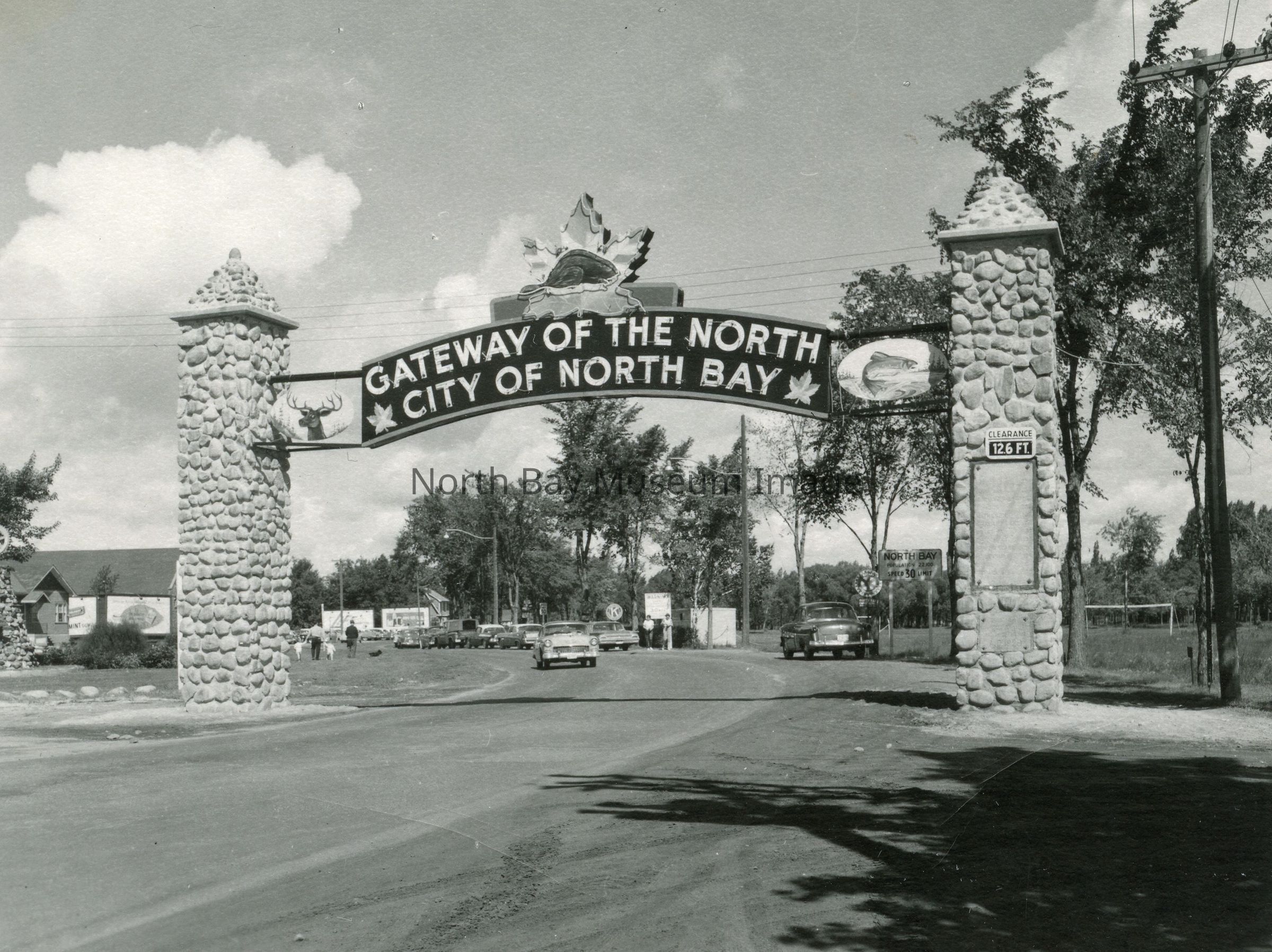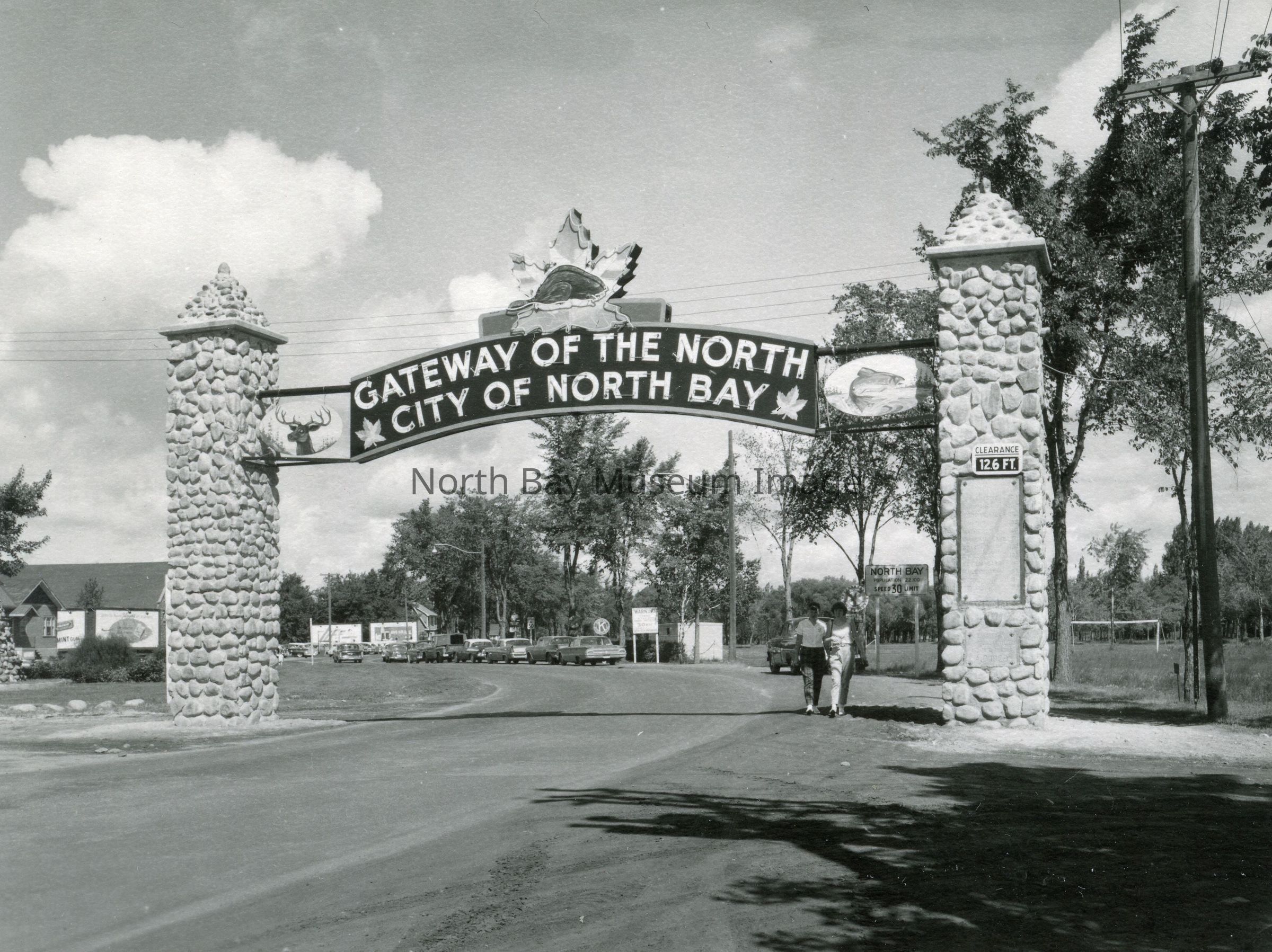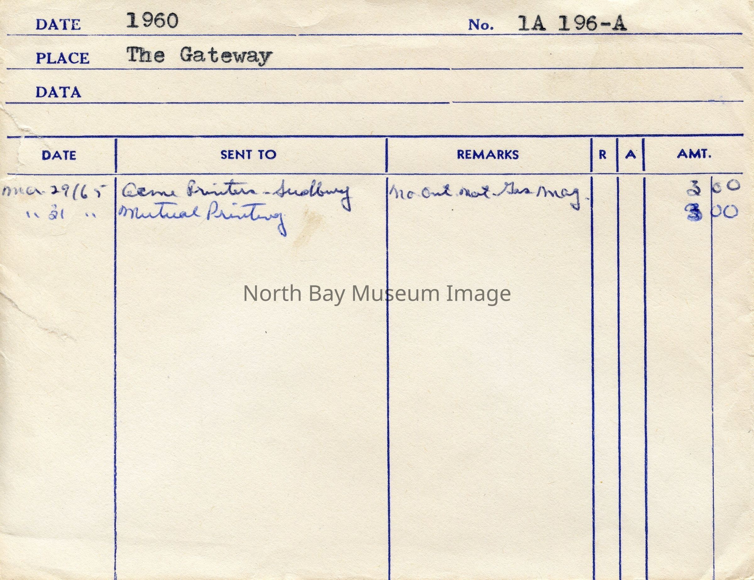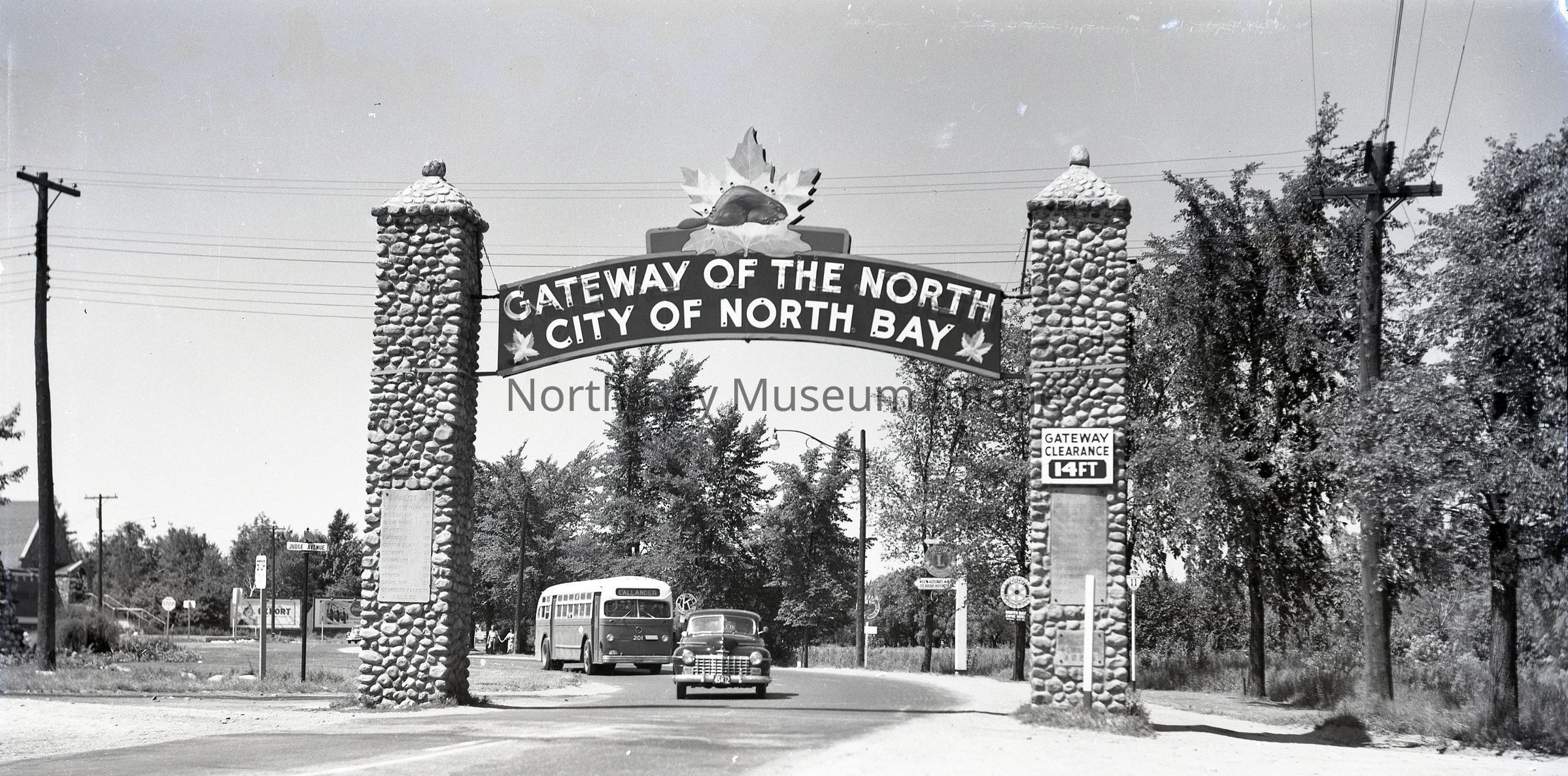William Forder's original photographer's envelopes (a) with photo and negatives of various views of the North Bay Gateway Arch with road running under it. Places published are listed on the envelope.