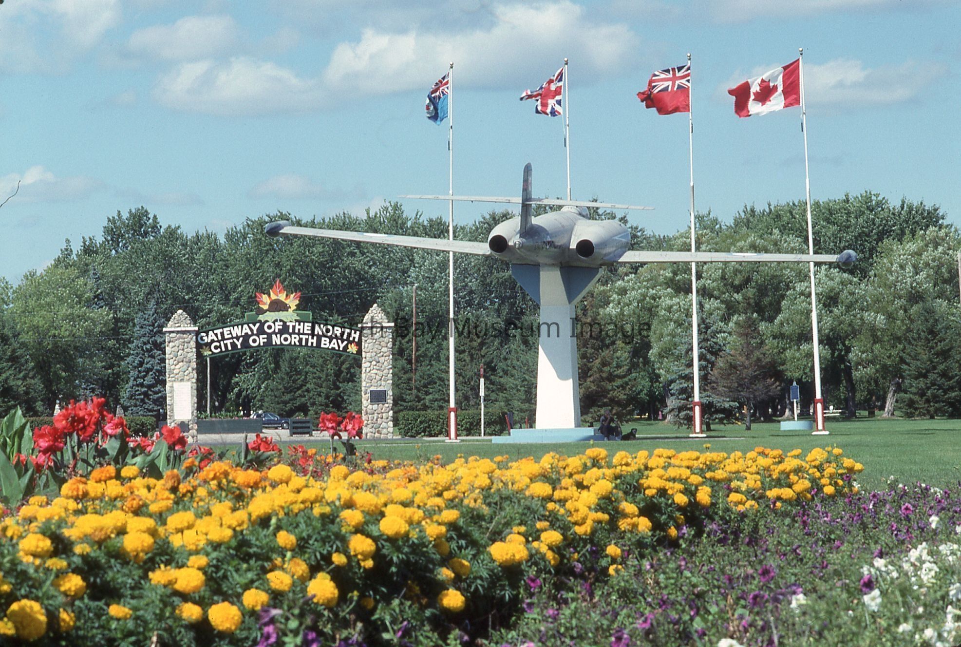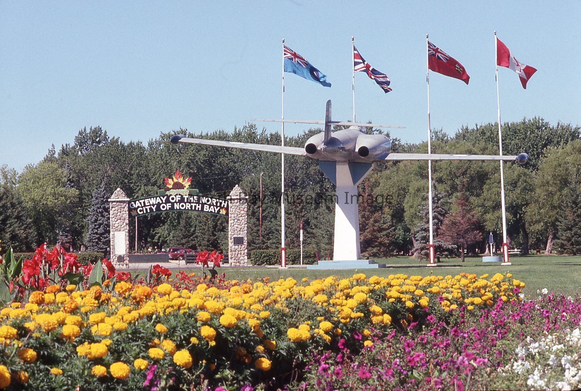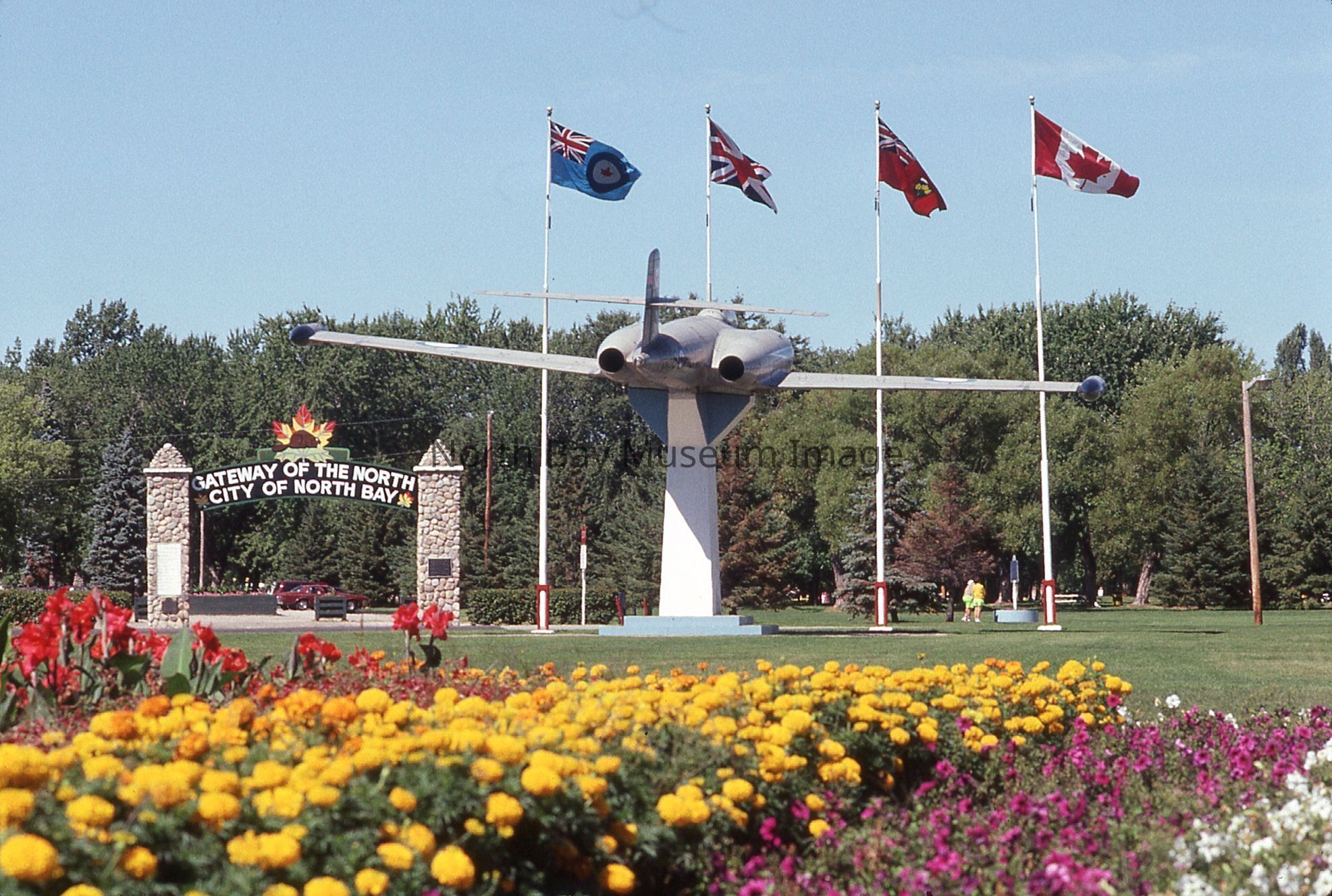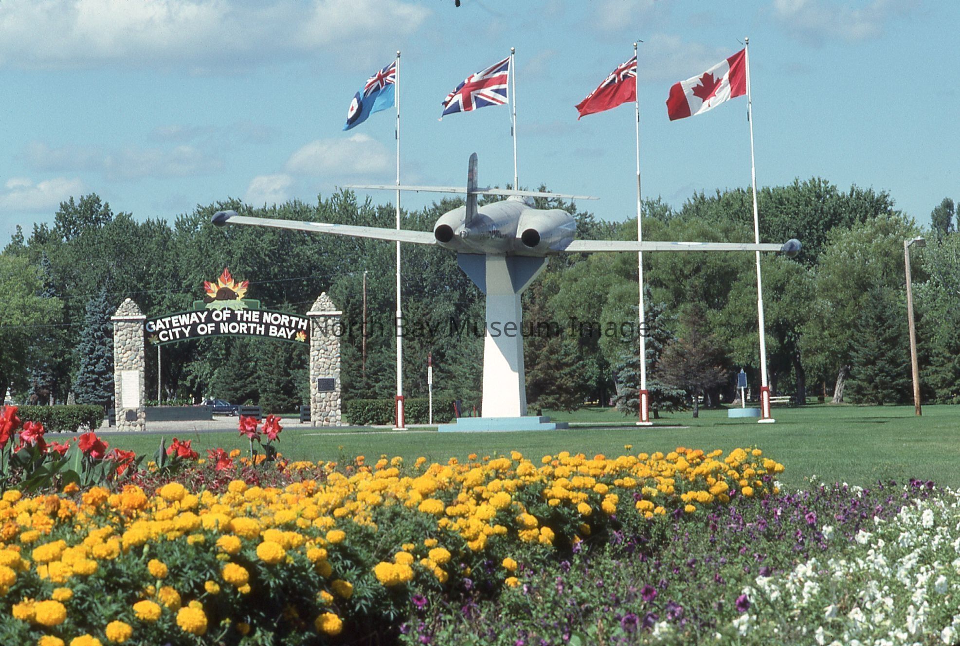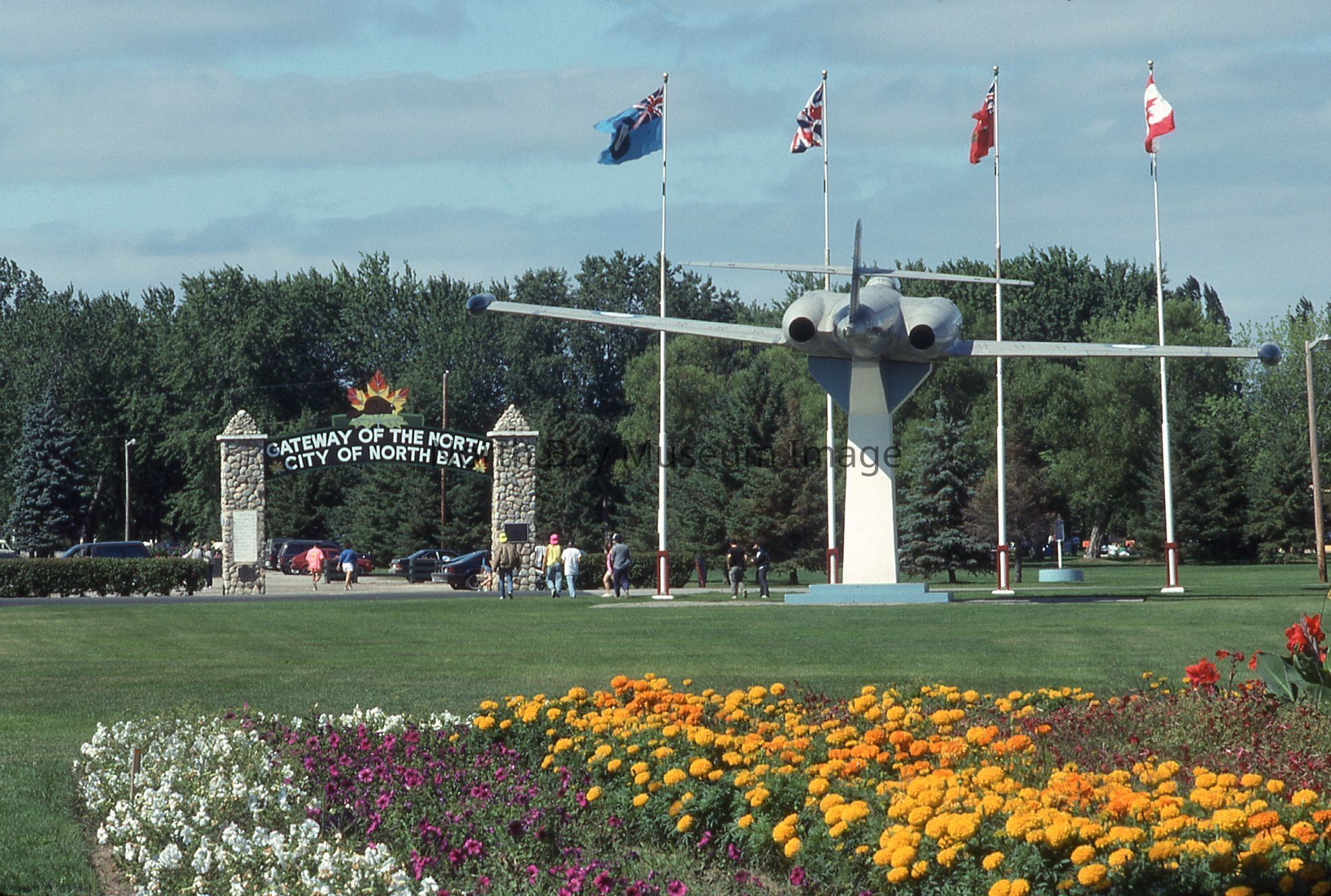 William Forder's original photographer's envelopes (a+b) with original number 90-023 and 90-021. Slides are of various views of the North Bay Gateway arch with flower beds and CF100 in view at Lee Park.Creator