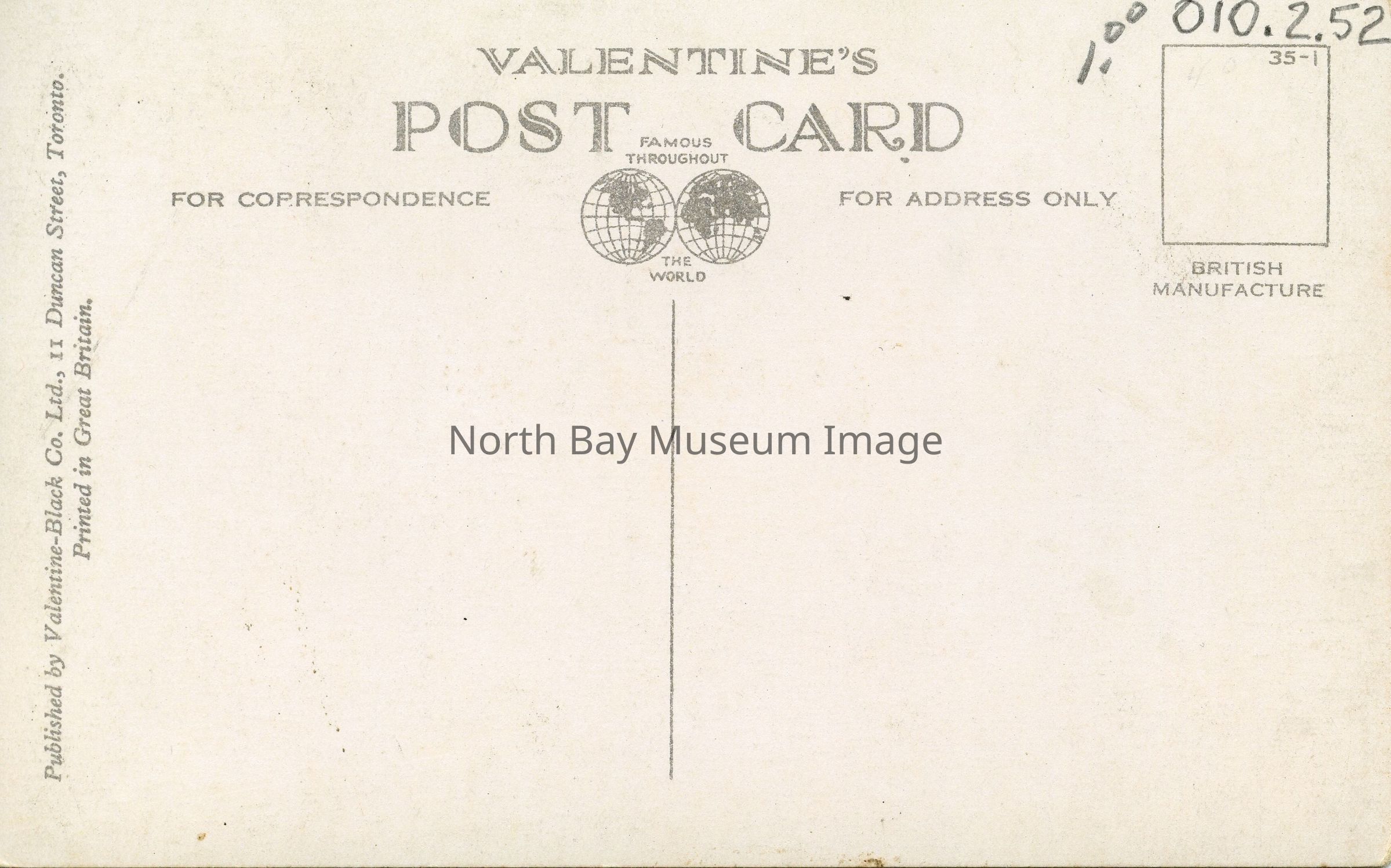 Valentine-Black Co., Ltd., 11 Duncan St., Toronto, Made in Great Britain