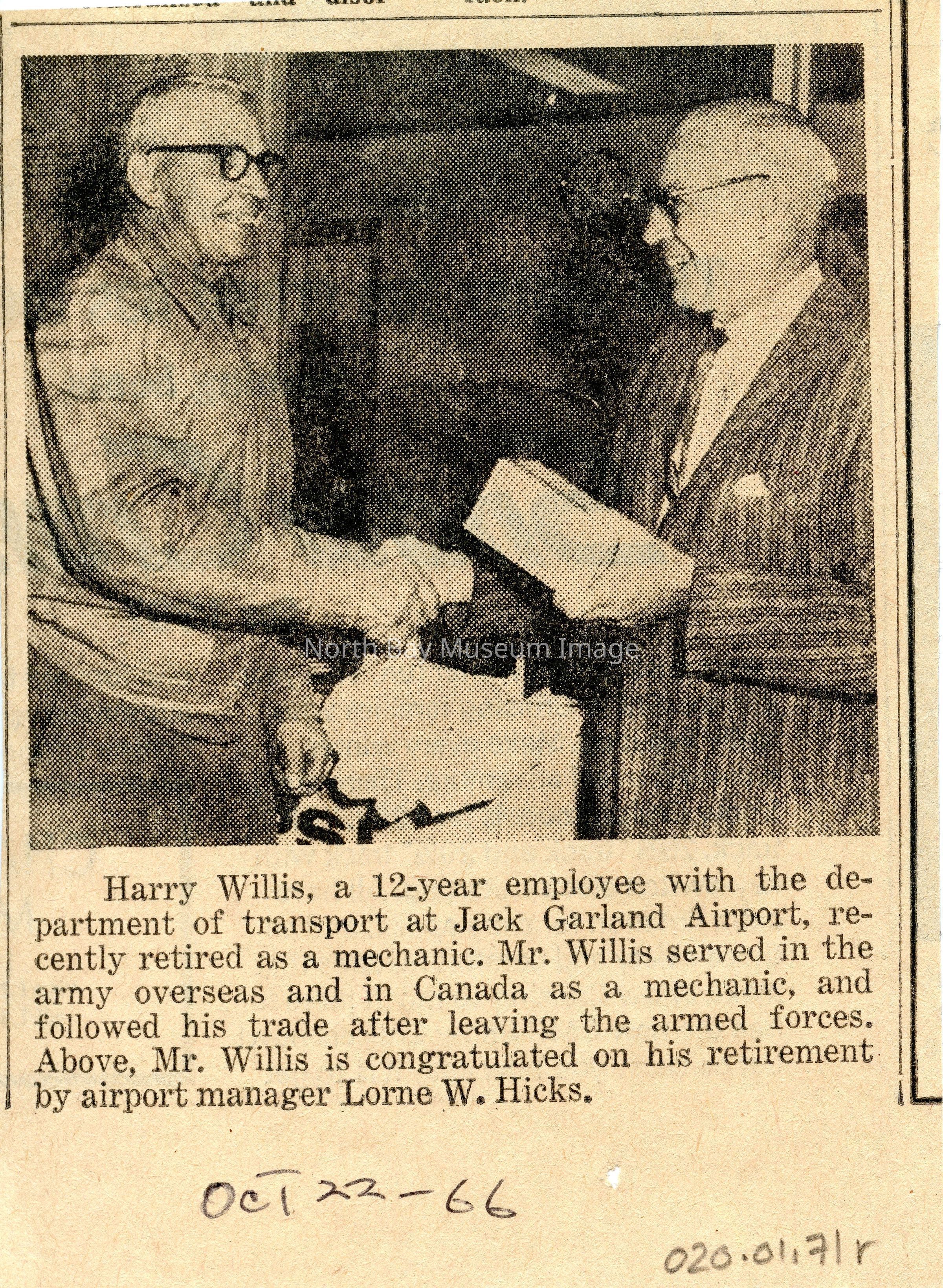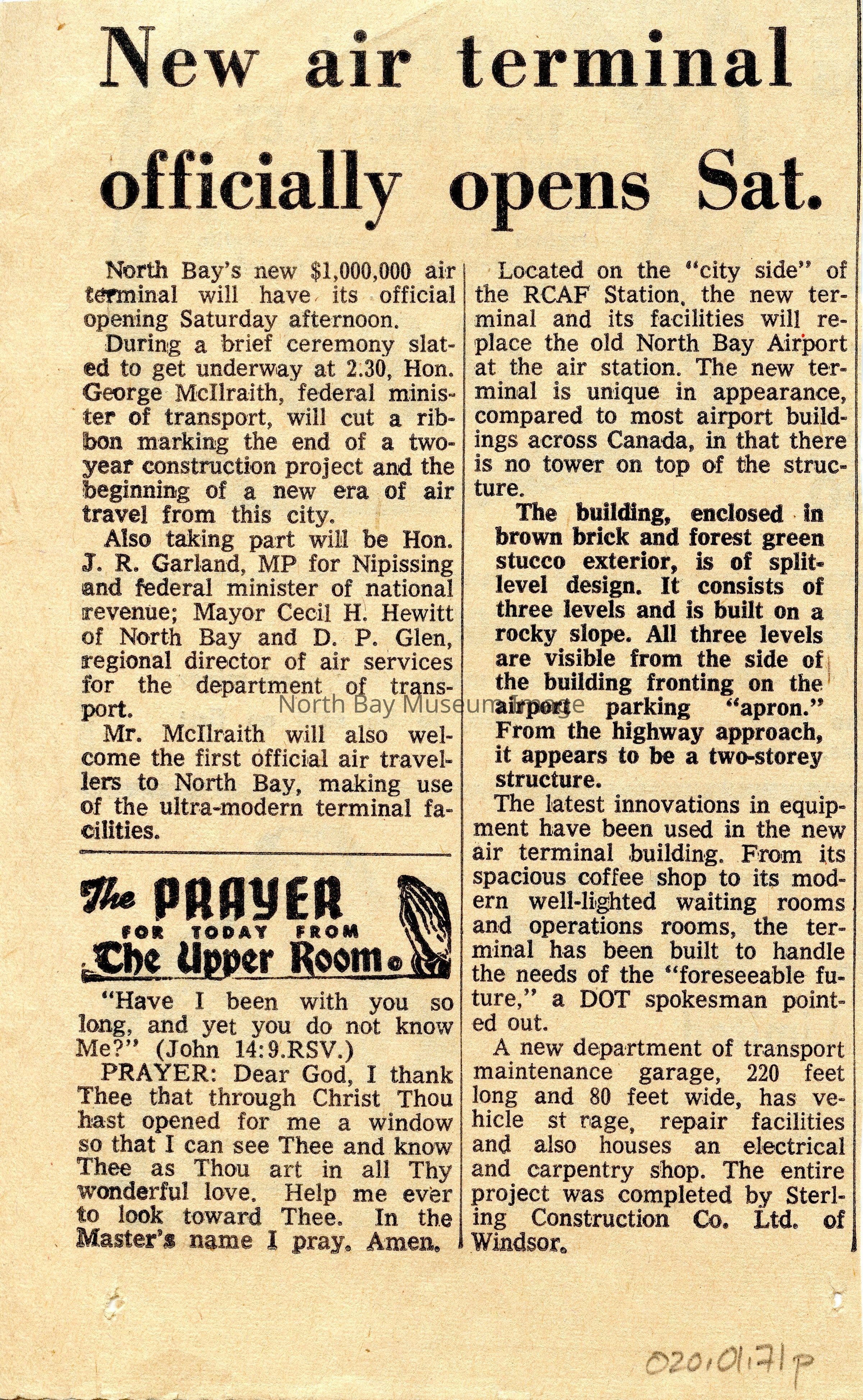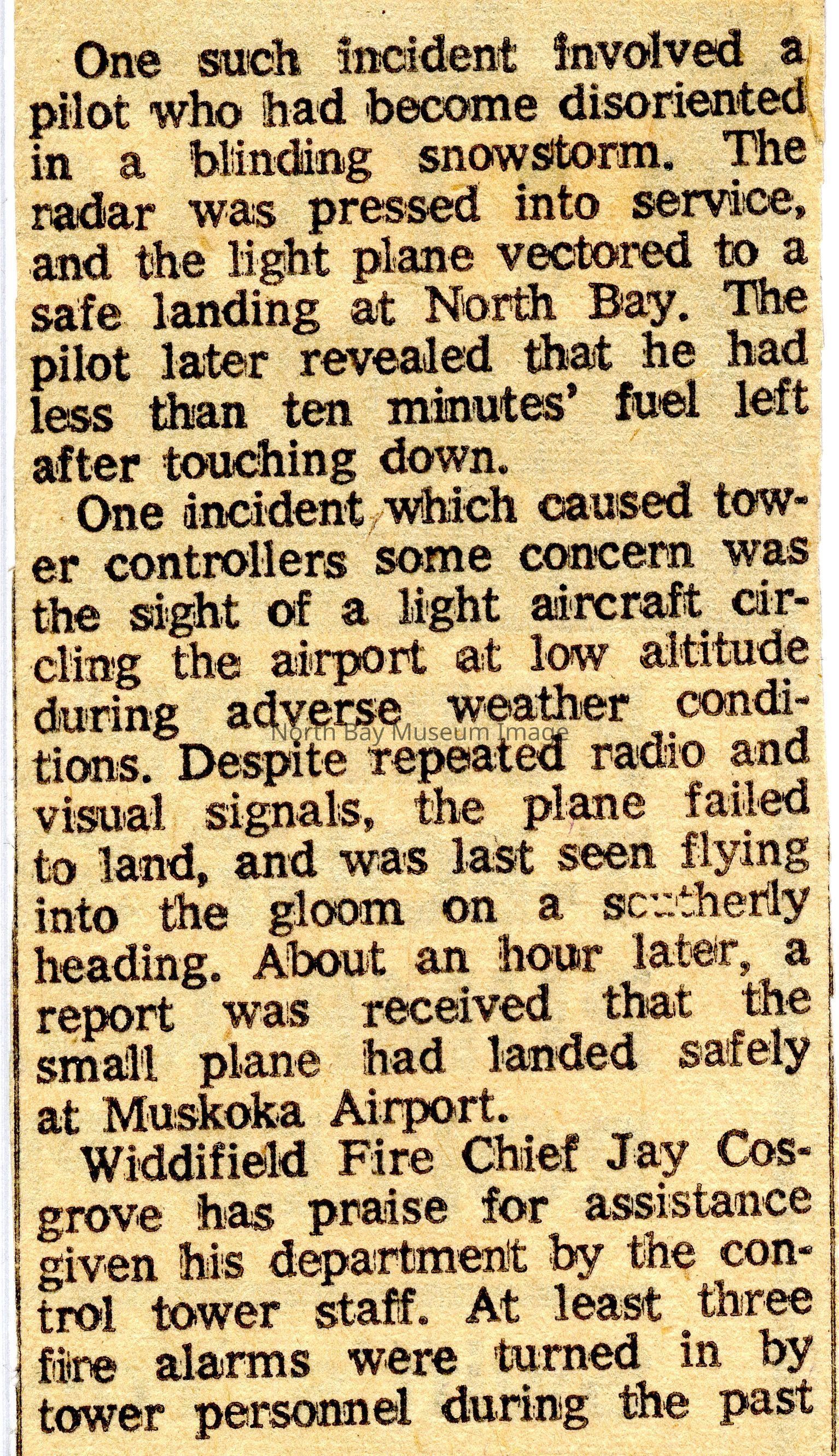 Collection of North Bay Nuggets connected to the North Bay airport. Articles on various topics, dating to 1960s.