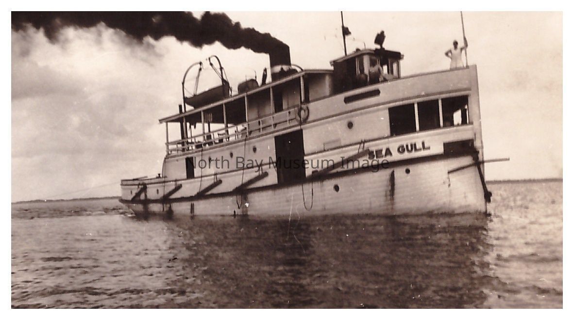Black & white photograph that is a closer view of Sea-Gull ship.