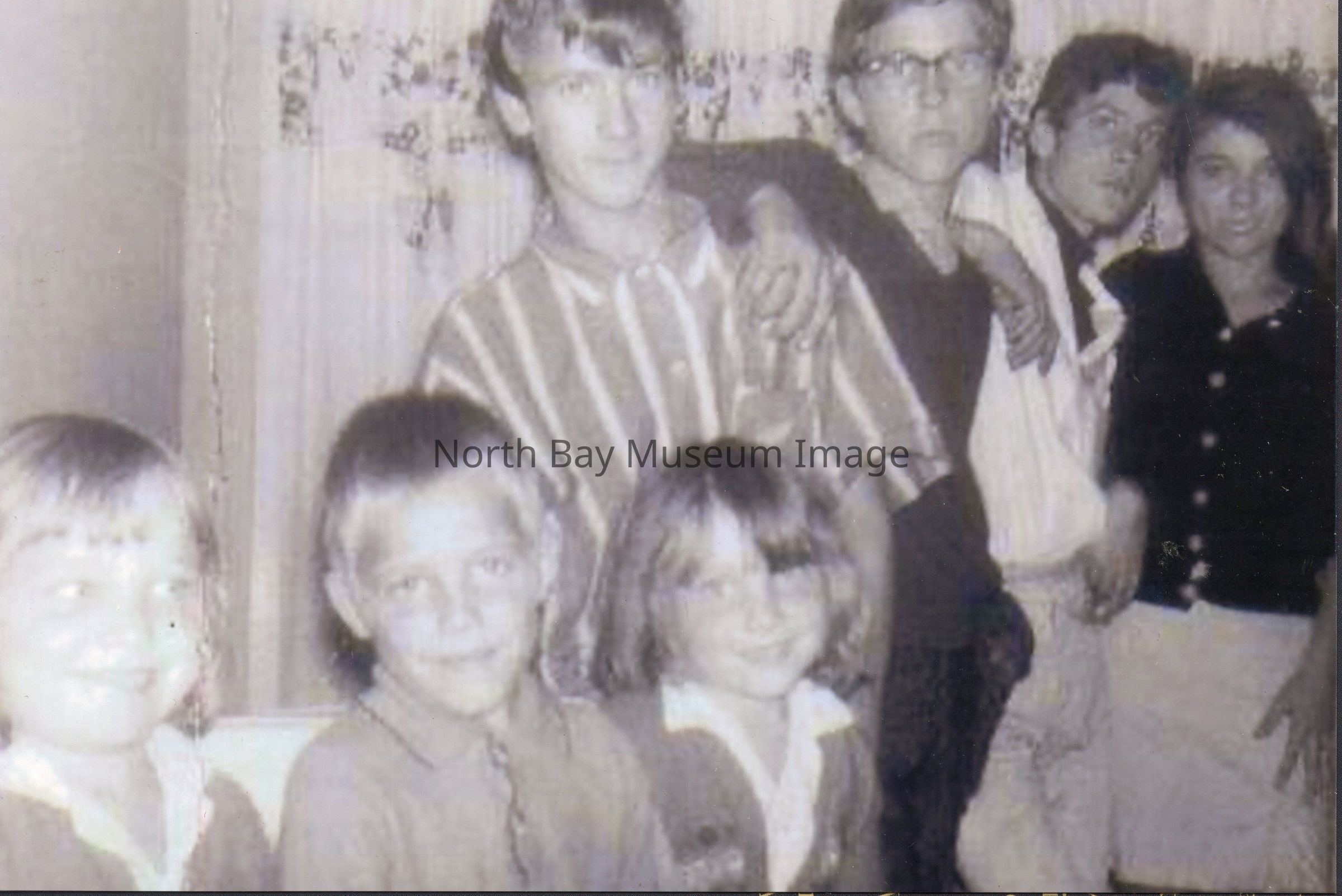 Front, the Rousseau Triplets, centre Garry. Back from left, (possibly) Daniel, David, Steven, and Jane. This may be for a birthday party or somesuch occasion. Possibly their sixth or seventh birthday, explaining the continued presence of their eldest sister Jane.