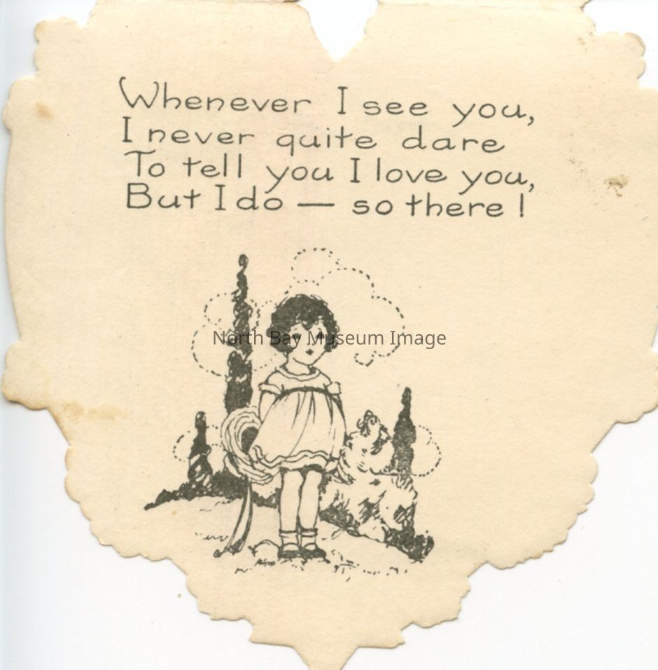 The inscription inside, of the card "whenever I see you, I never quite dare to tell you that I love you but, I do-- so there." The inside has a illustrated image of a little girl standing on a hill.