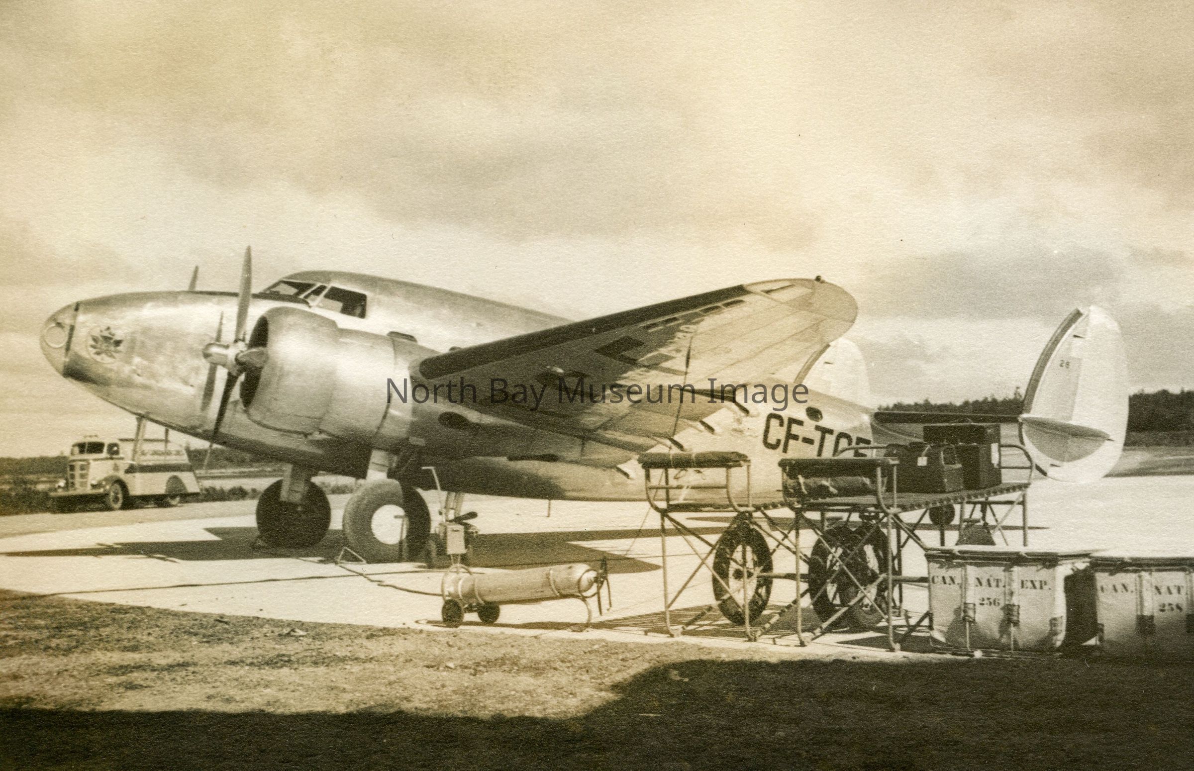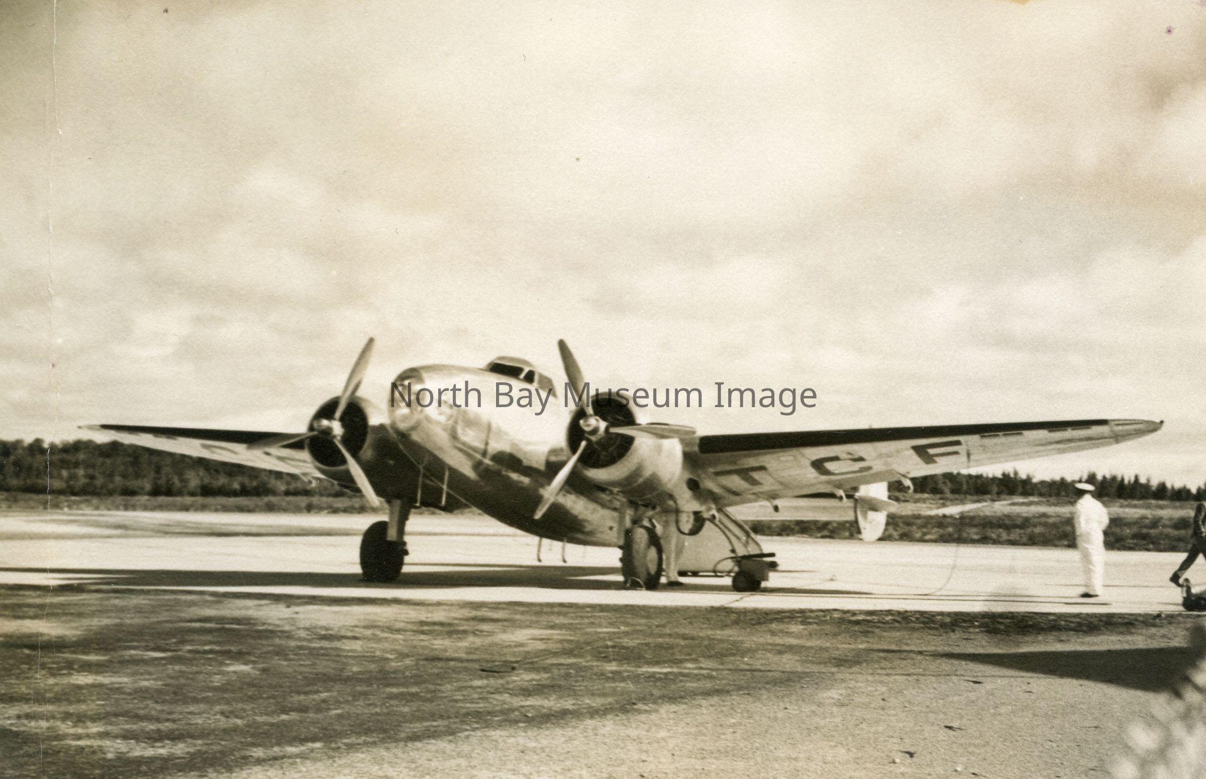 (a) and (b) are Photos of Trans Canada Airlines planes. Both planes are parked on the runway. The planes both have decals on side of the nose of the plane, and the letters 'TCF' under wing. Part of the William Forder Collection.Creator