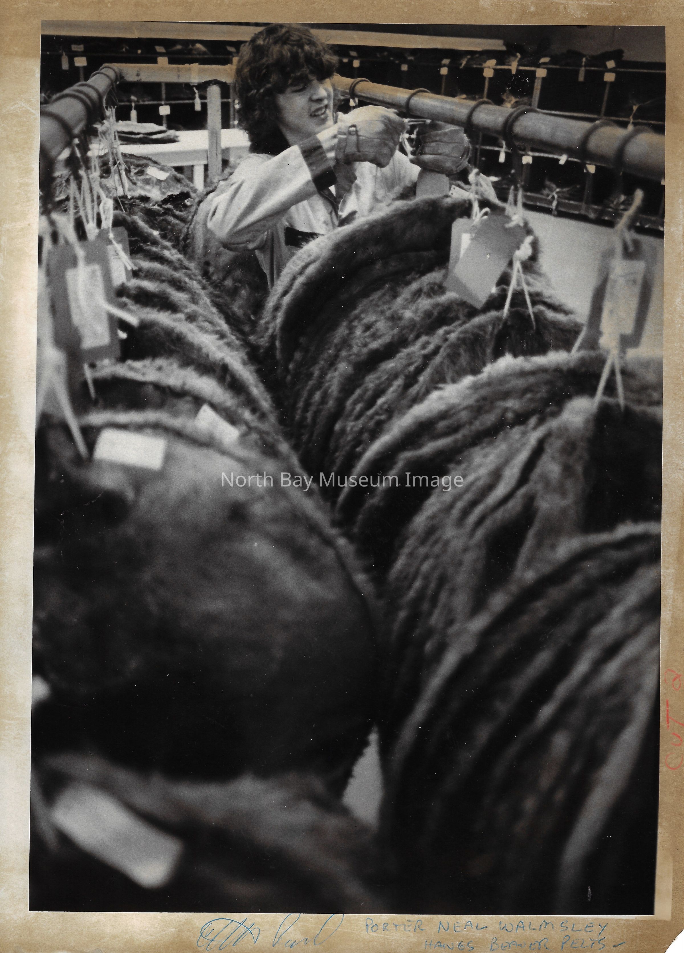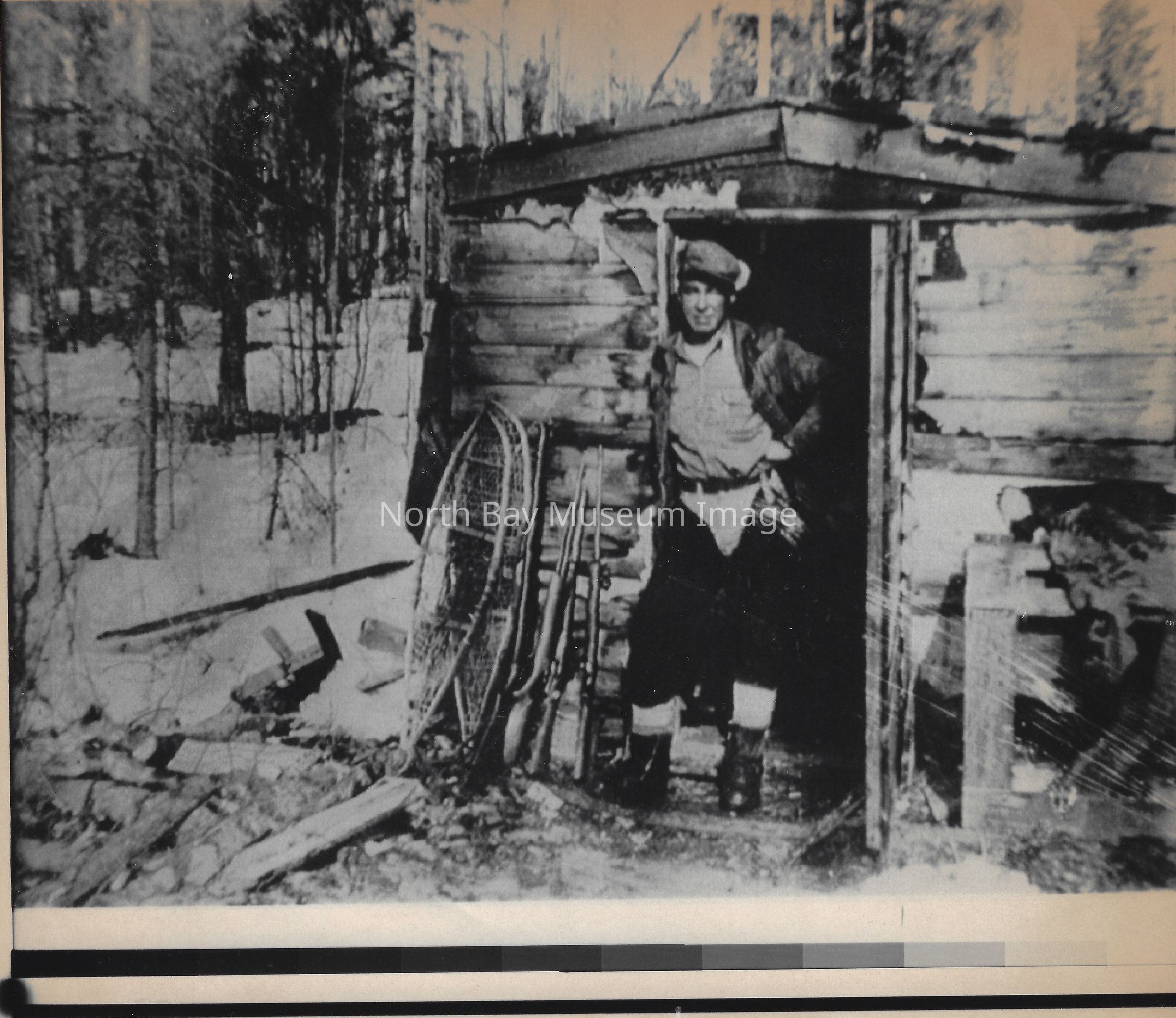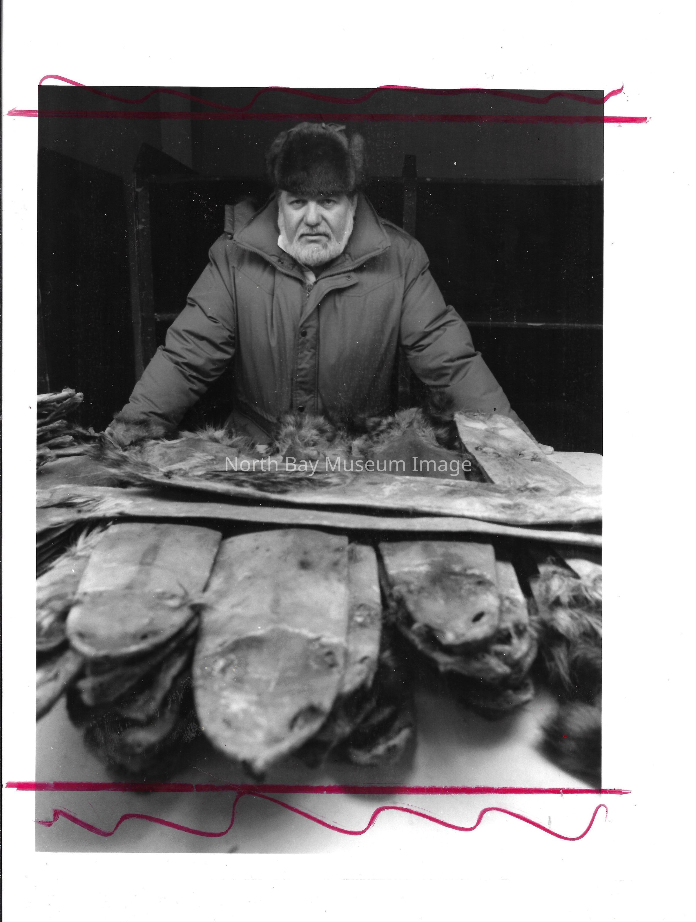 Photos of trapping cabin, and furs for sale.