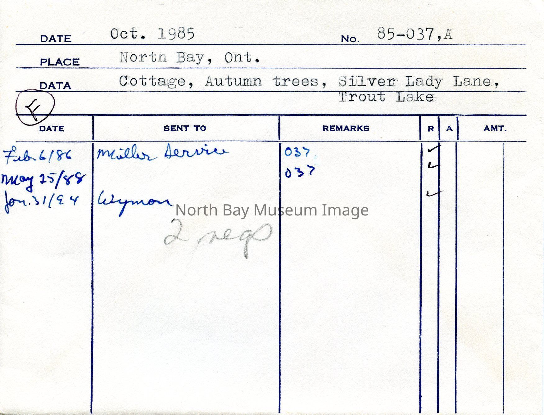 a- Original envelope from photographer WIlliam Forder identifying the photos and dates and original number 85-037. Dates used for publication identified on envelope.