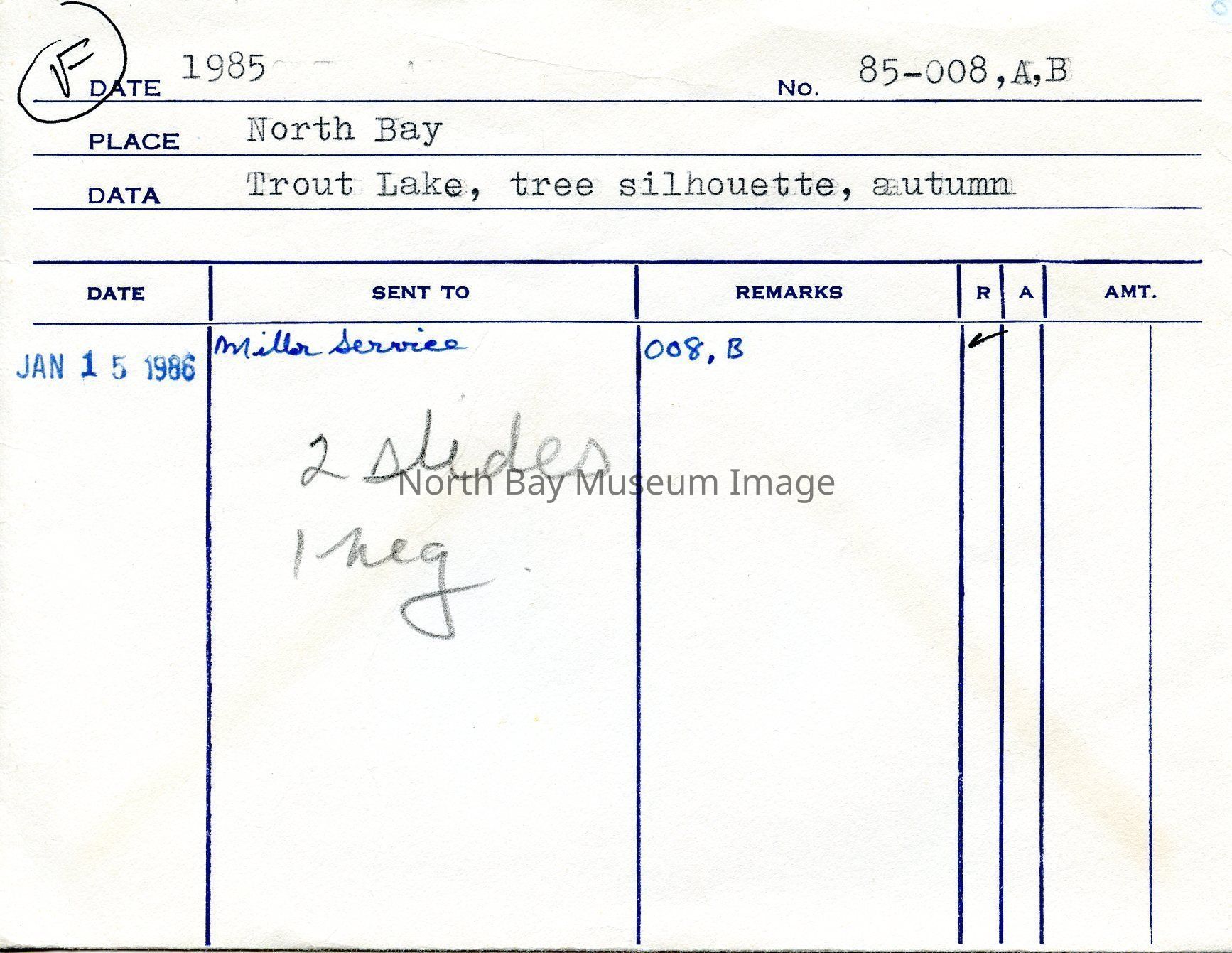 a- Original envelope from photographer WIlliam Forder identifying the photos and dates and original number 85-008. Dates used for publication identified on envelope.