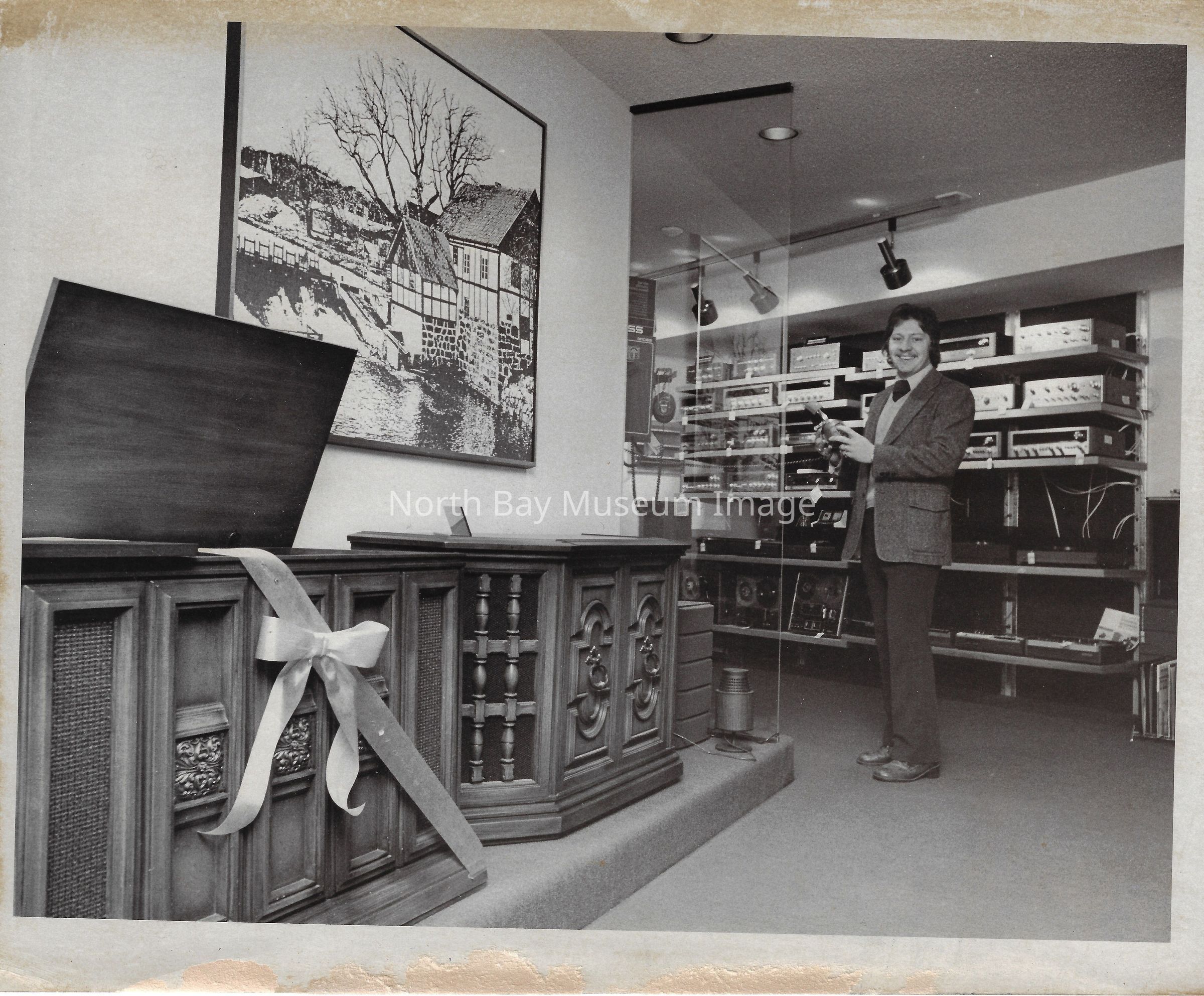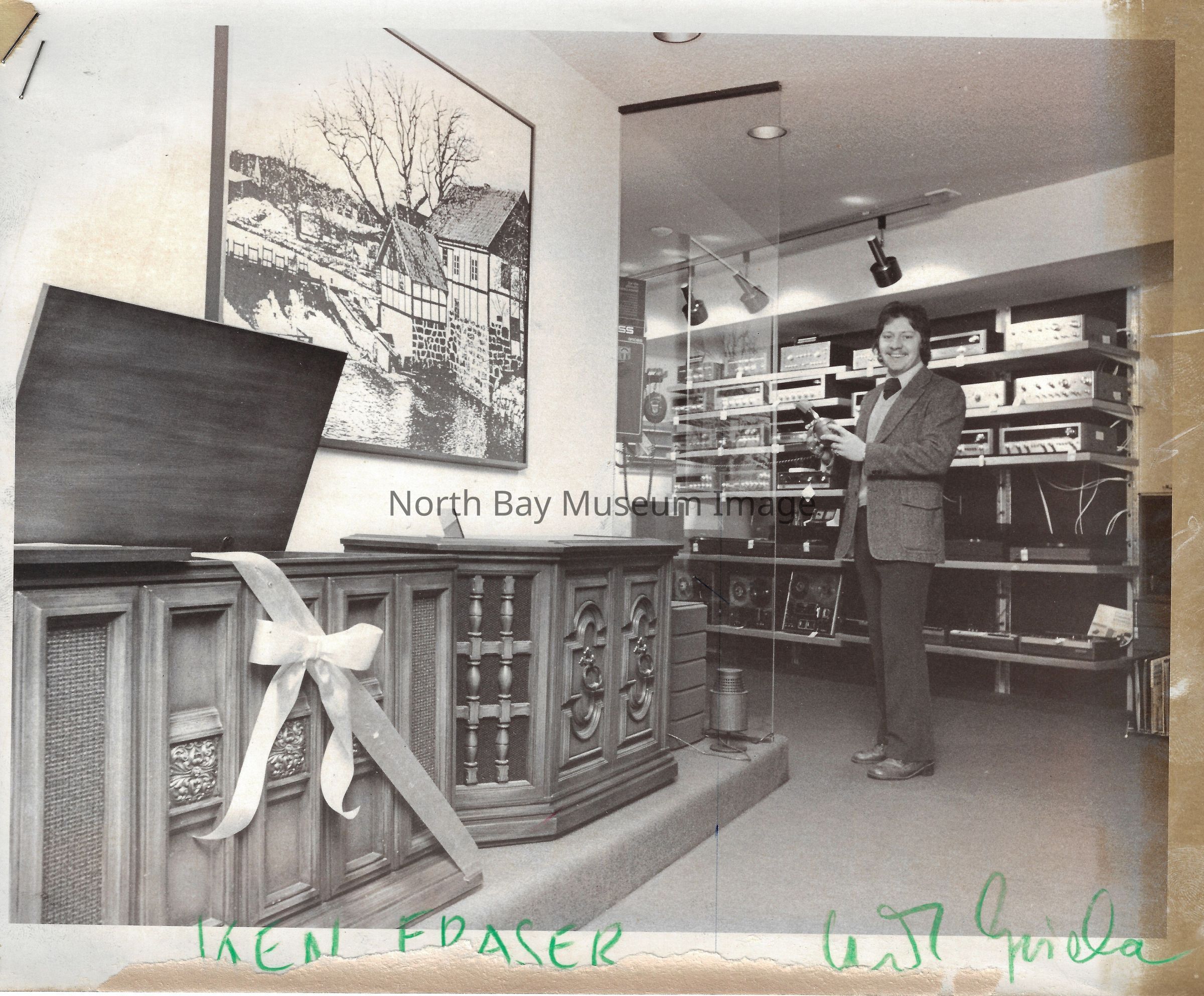 Photos of Ruth Stanfel and Ken Fraser next to audio systems at North Bay TV and Audio.