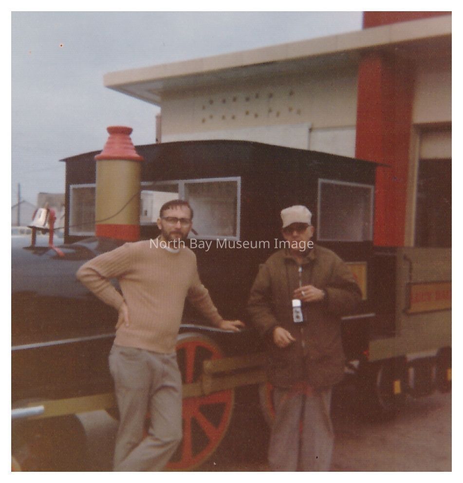 Two Men in Front of Locomotive Float