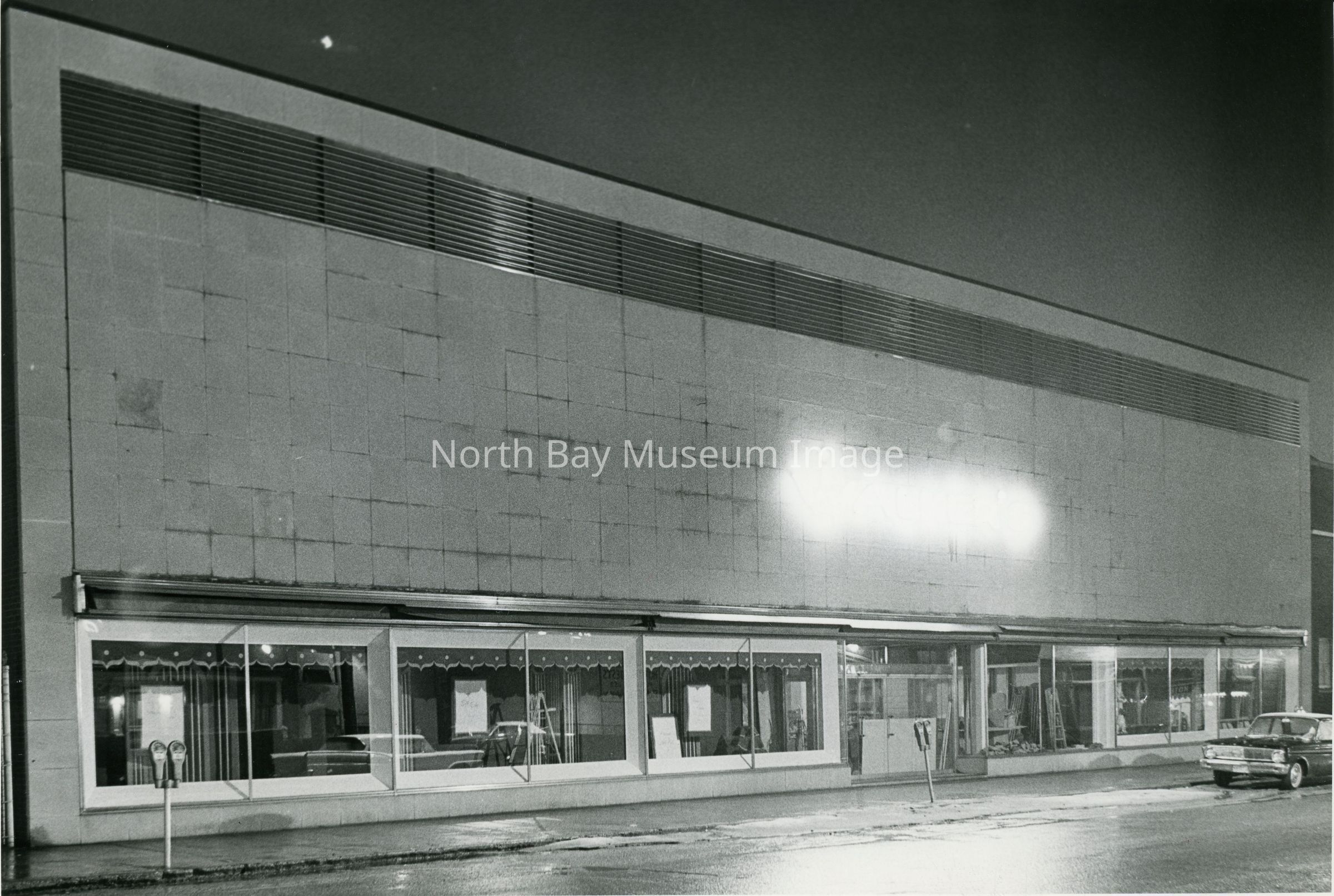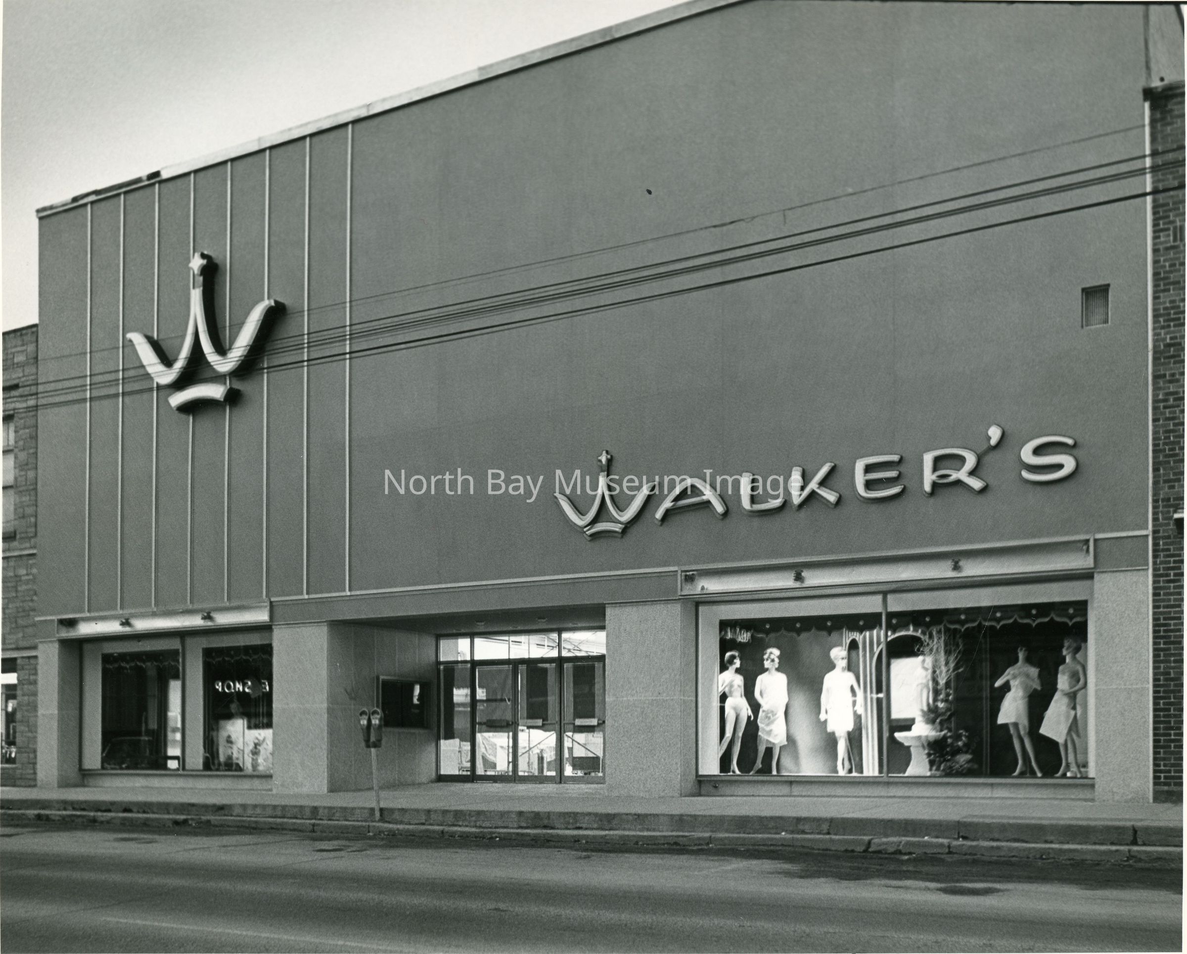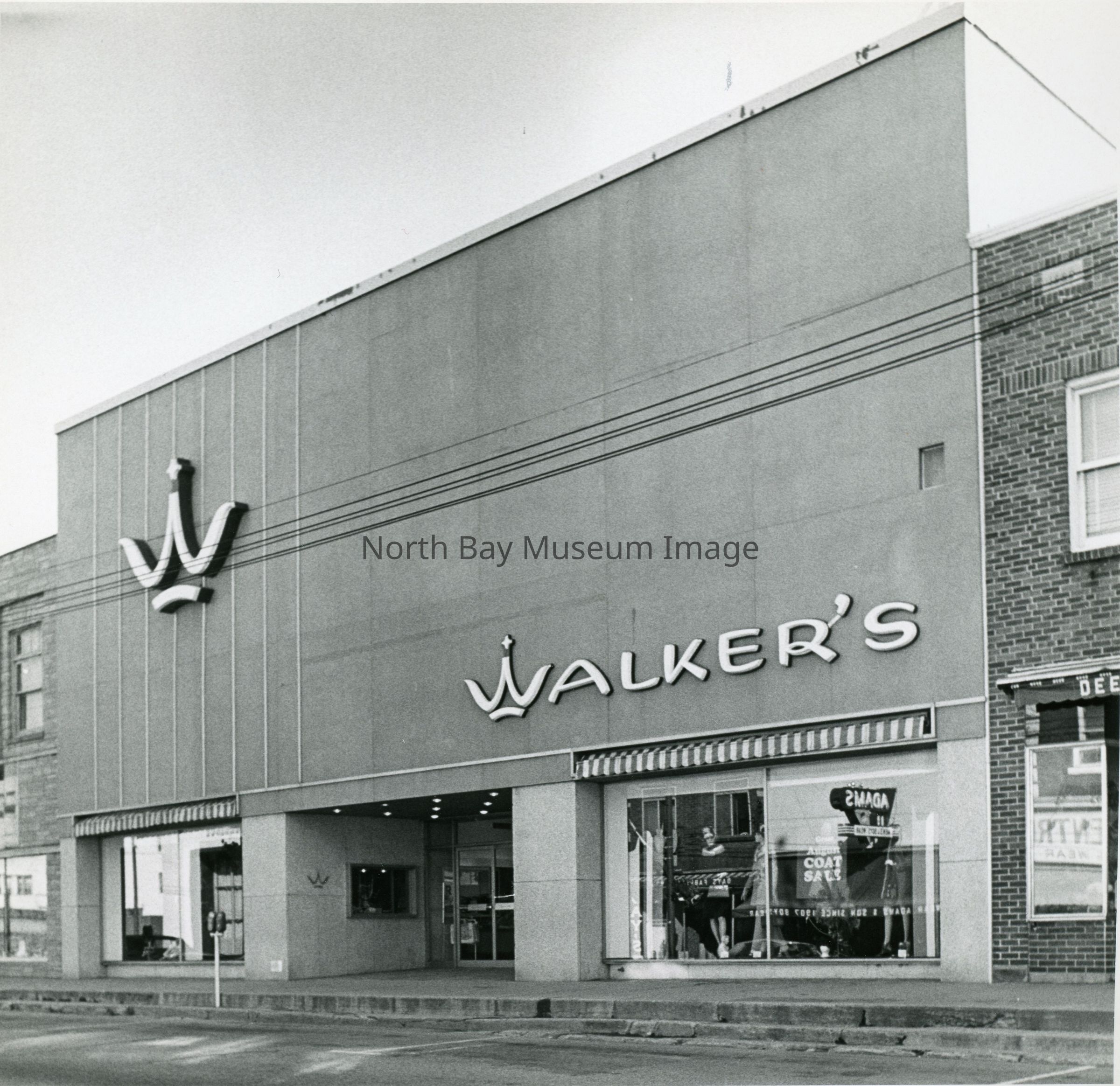4 photos of the exterior of North Bay's Walker's Store in the 1960s. The store opened in the late 1960s within the building which was formerly Eaton's. There had been another Walker's store earlier in North Bay. The photos were donated by the daughter of store manager. The store was located next to Deegan's on Main Street. A,B and D show front of the store while C shows the back.Date(s) of Creation
