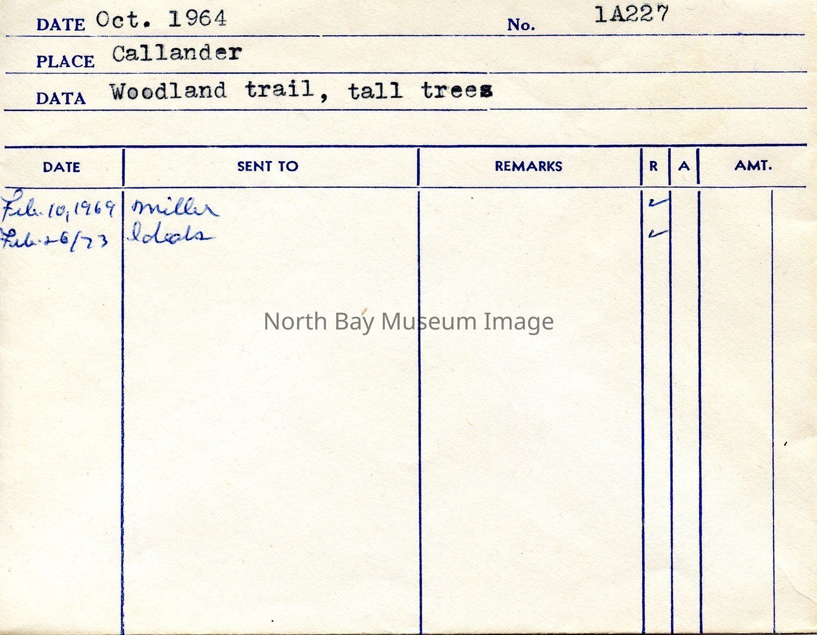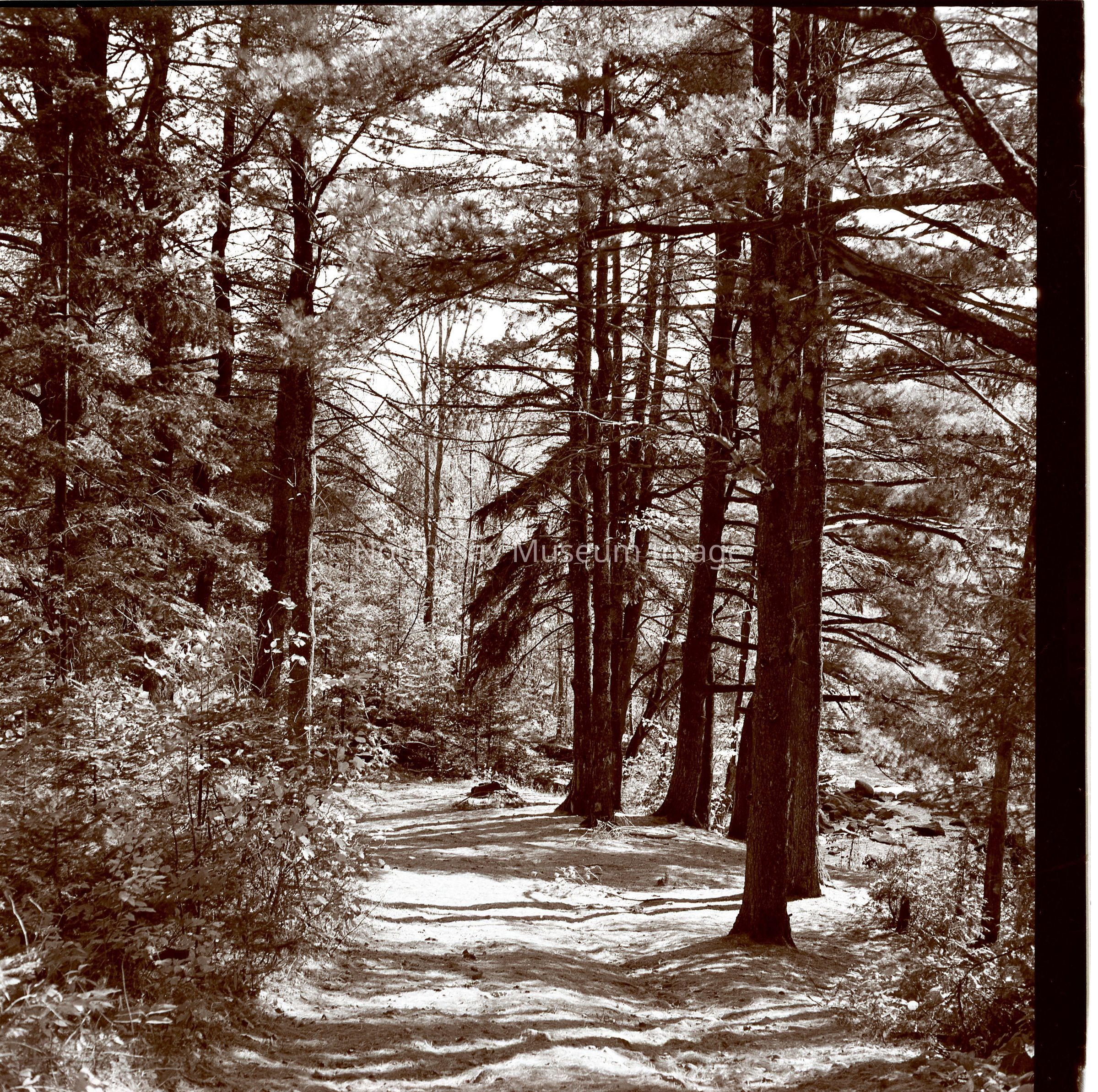Envelope (a) contains the photographs and negatives (b-c) of the Woodland trail in Callander. The image captures the vast and grand nature of the tall trees on the woodland trail in Callander. A part of the Forder Collection. The photographers original accession number is 1A227. All the publications of the images are written on the envelopeCreator