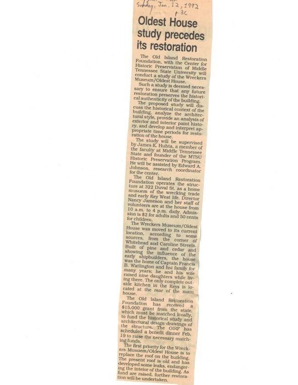 1992 Newspaper Article - Study Precedes Restoration
