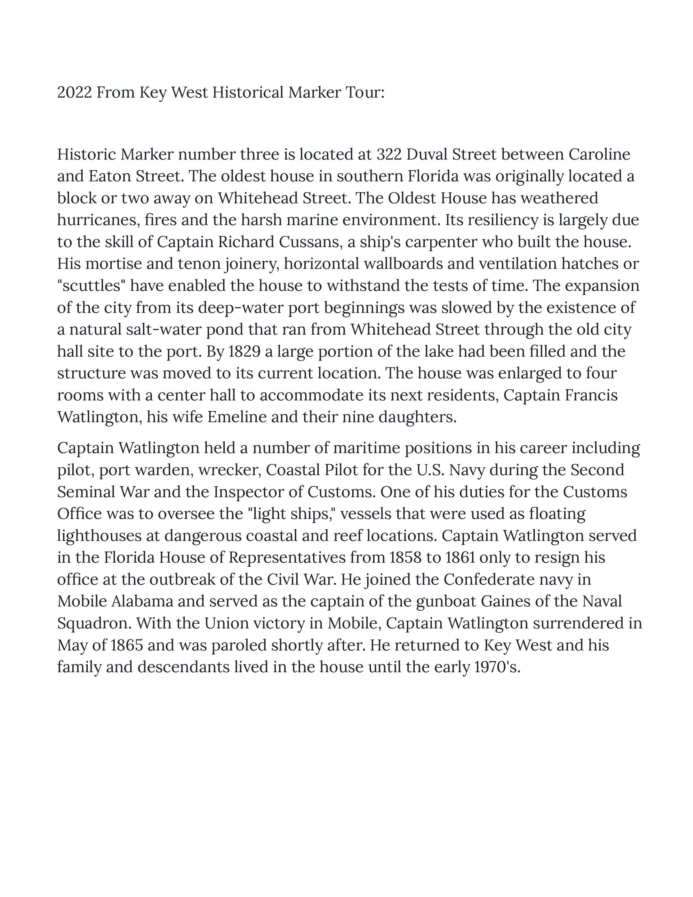 House Description - Key West Marker Tour