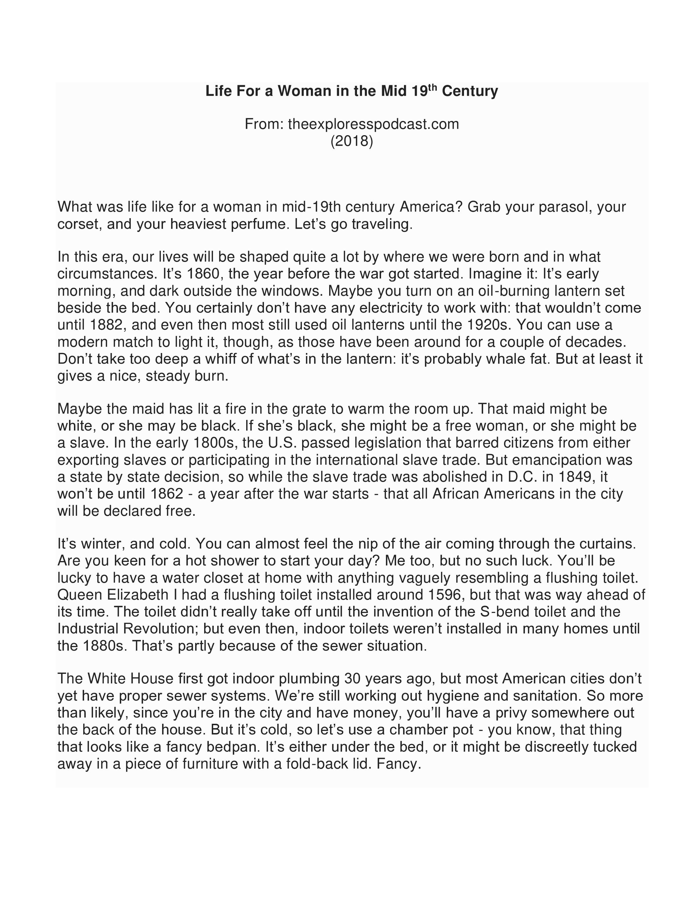Life for a Woman in the Mid 19th Century