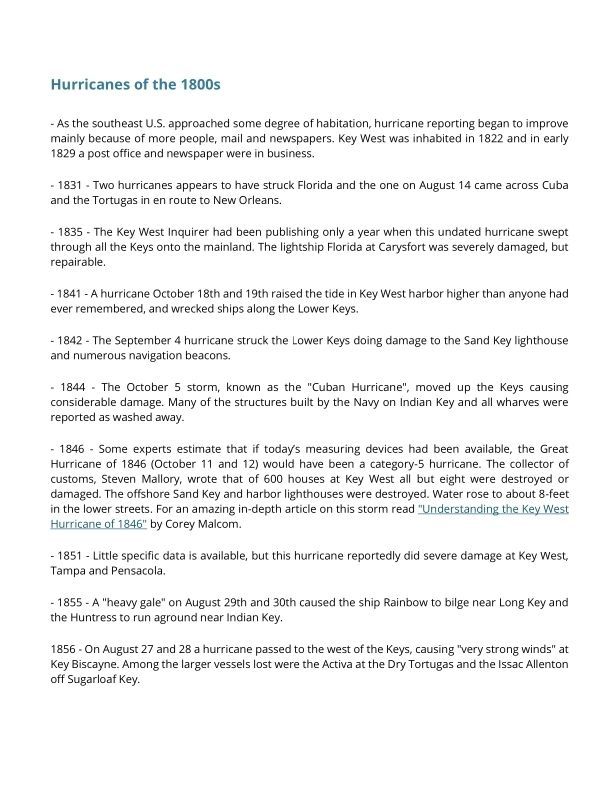 Hurricanes of the 1800's and 1900's