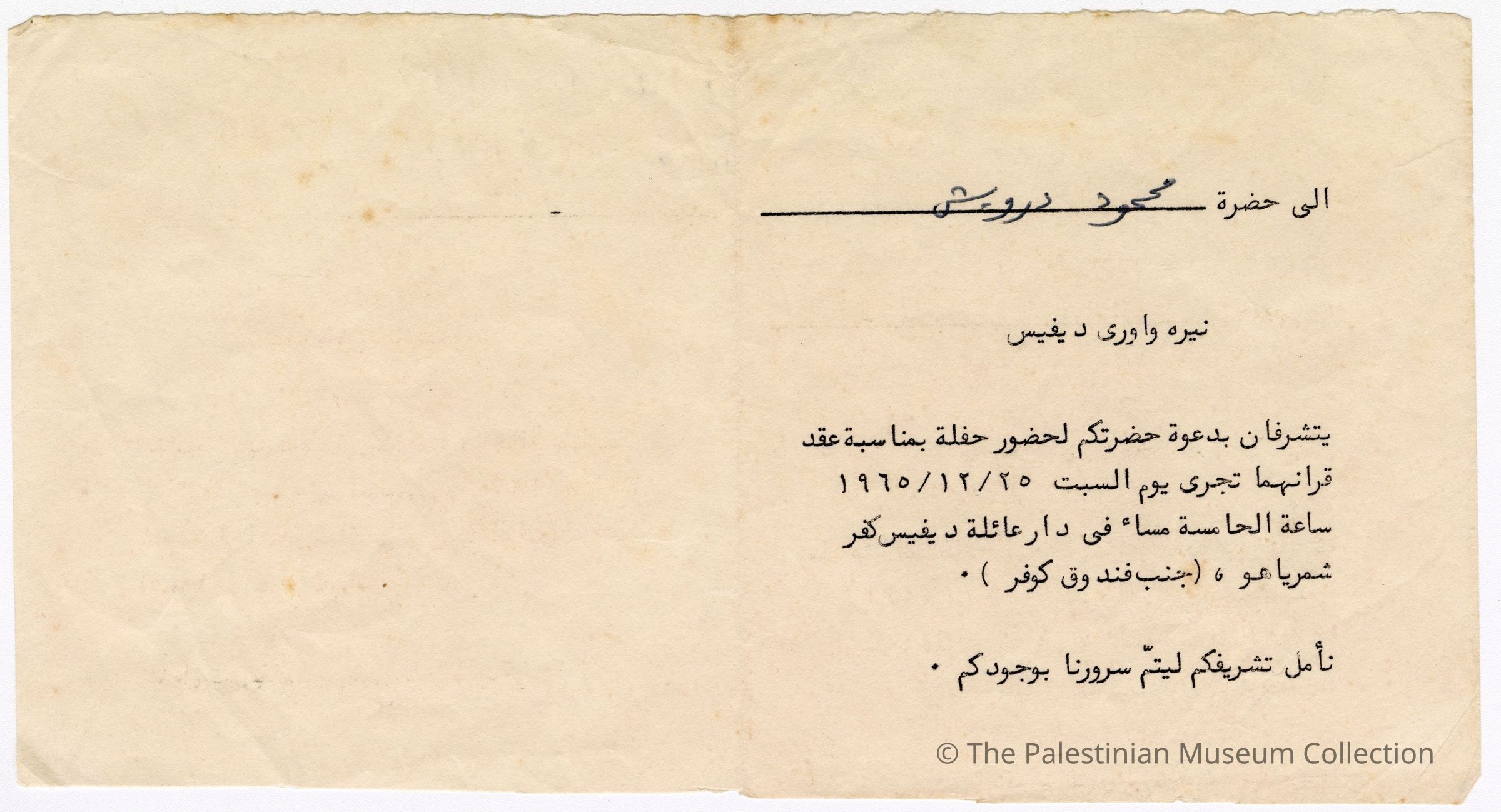 بطاقة- محمود درويش