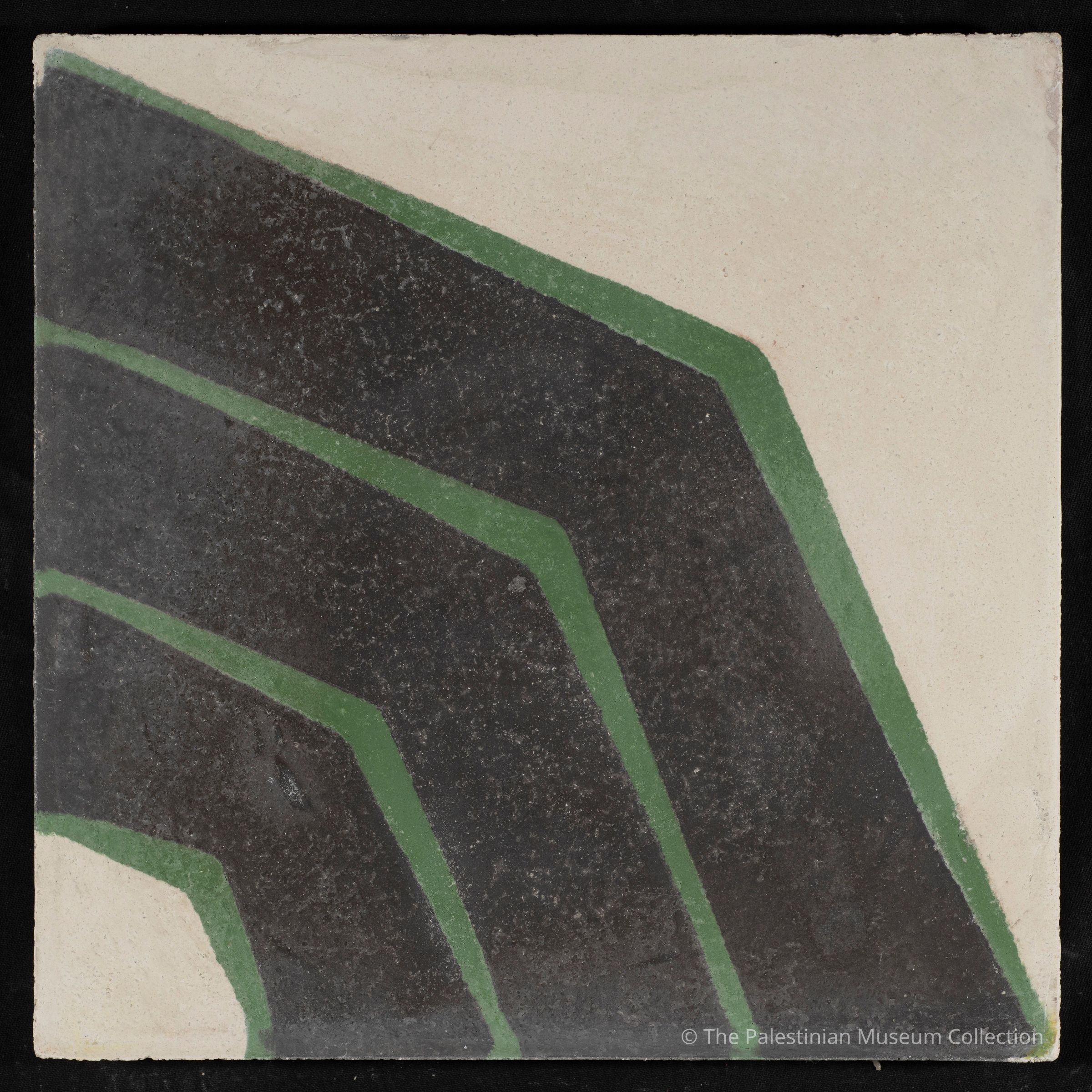 بلاطة إسمنتيّة ملوّنة بحجم 20 × 20 سم، تحمل تصميم "العنكبوت"، وهي نموذج حديث سُكبت في قالب يمتلكه مصنع أصلان للبلاط في نابلس.