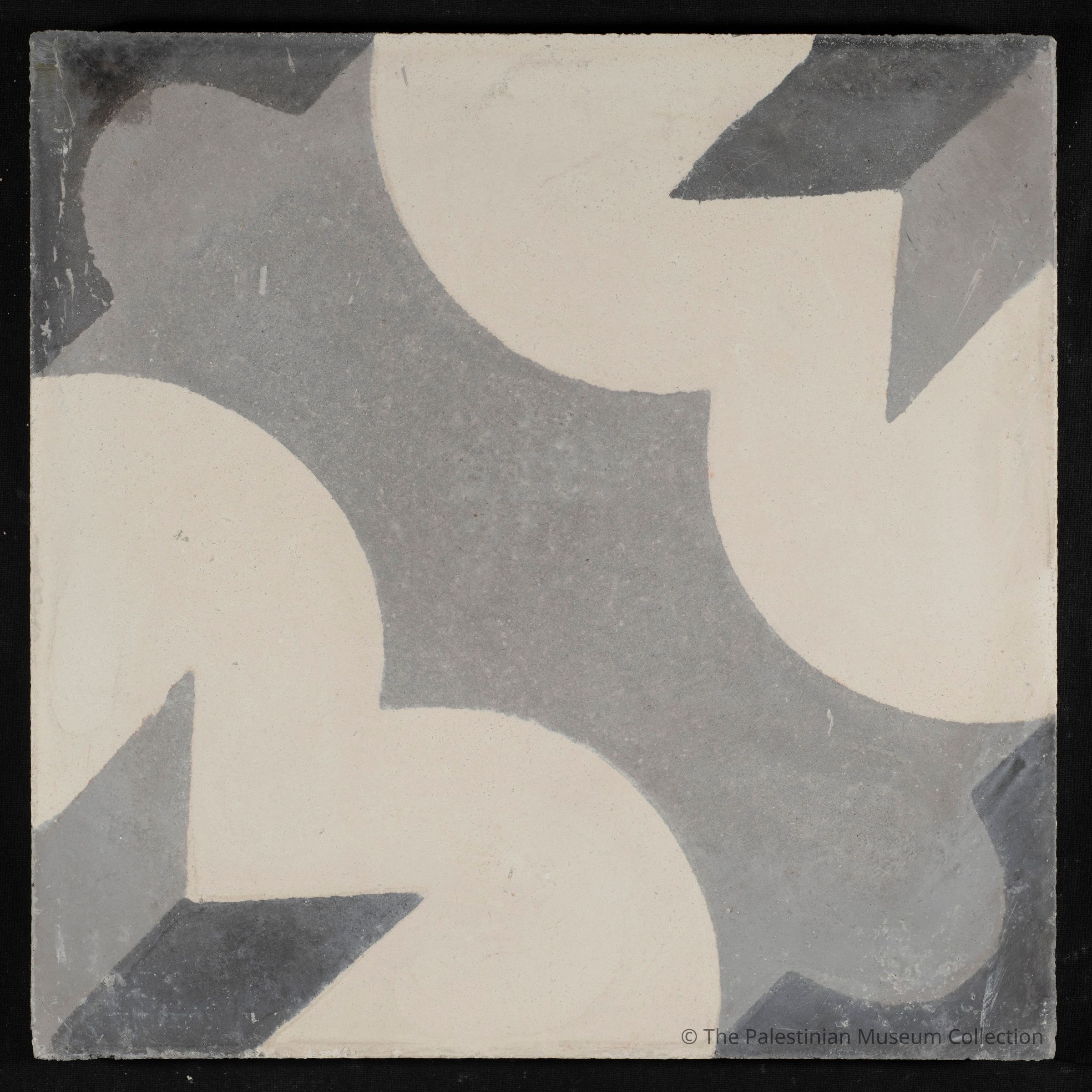 بلاطة إسمنتيّة ملوّنة بحجم 20 × 20 سم، تحمل تصميم "الفرنسية"، وهي نموذج حديث سُكبت في قالب يمتلكه مصنع أصلان للبلاط في نابلس يعود إلى عشرينيات القرن العشرين.