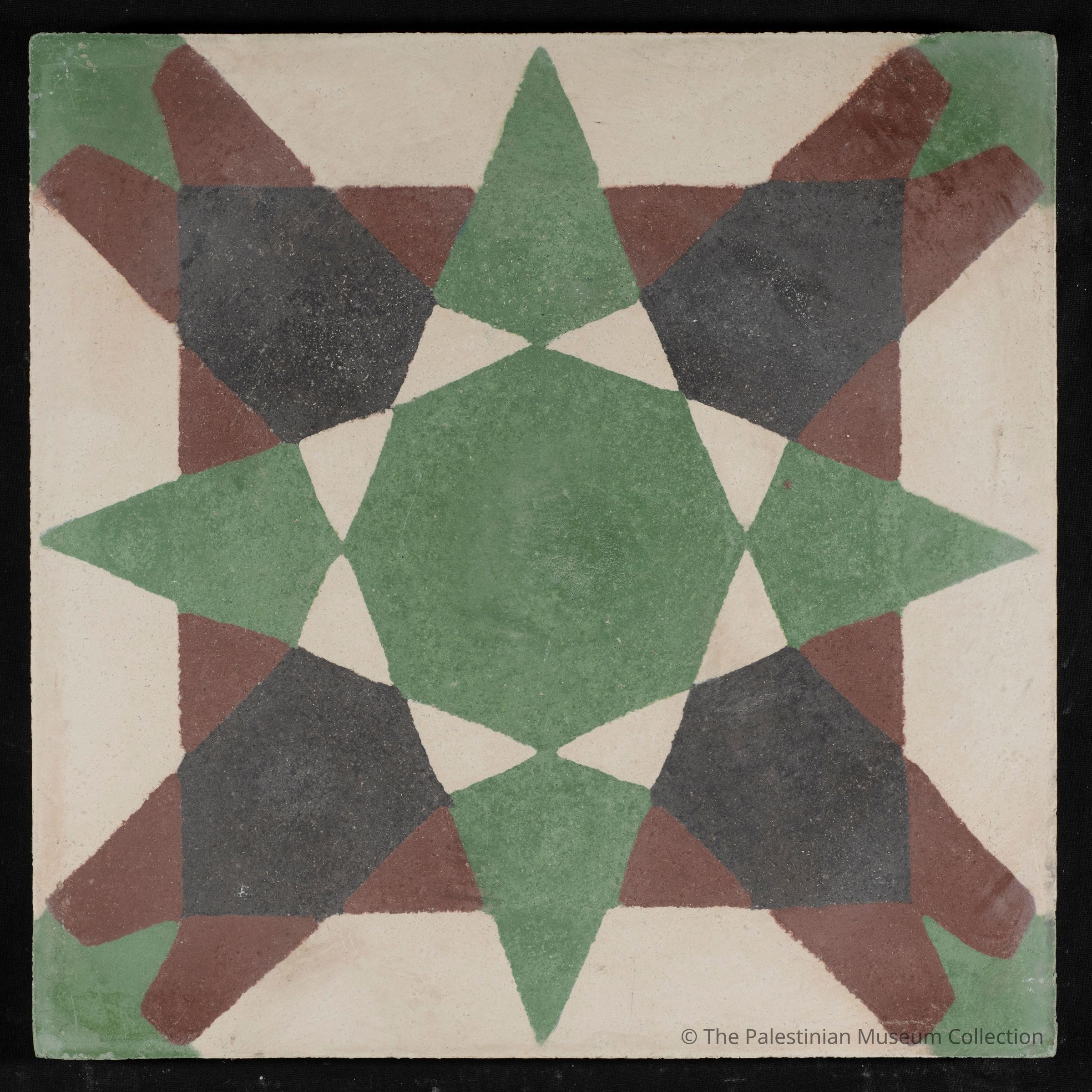 بلاطة إسمنتيّة ملوّنة بحجم 20 × 20 سم، تحمل تصميم "سجّادة الإسلامية"، وهي نموذج حديث سُكبت في قالب يمتلكه مصنع أصلان للبلاط في نابلس يعود إلى نهاية القرن التاسع عشر.