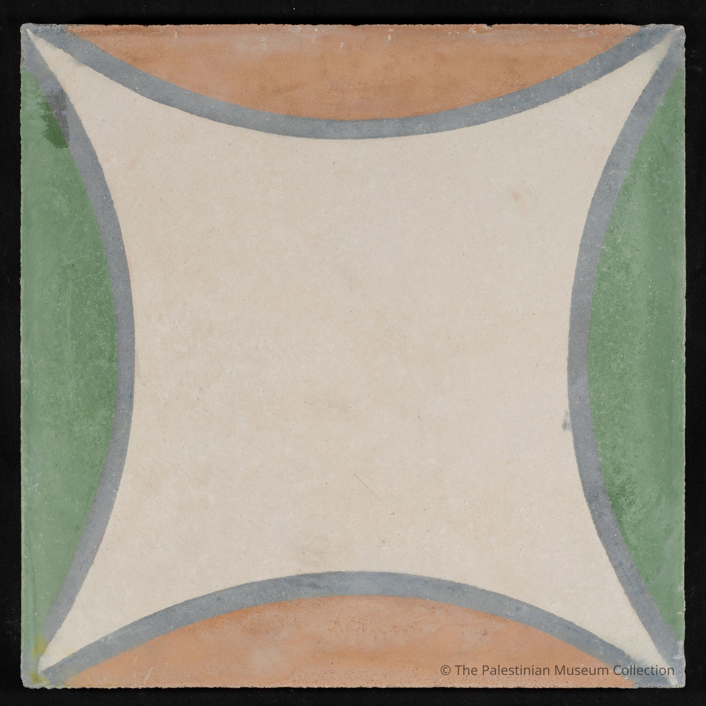 A 20 × 20 cm coloured cement tile. This tile is a contemporary reproduction, cast using an original mold from the Aslan Tile Factory in Nablus.Made/Created