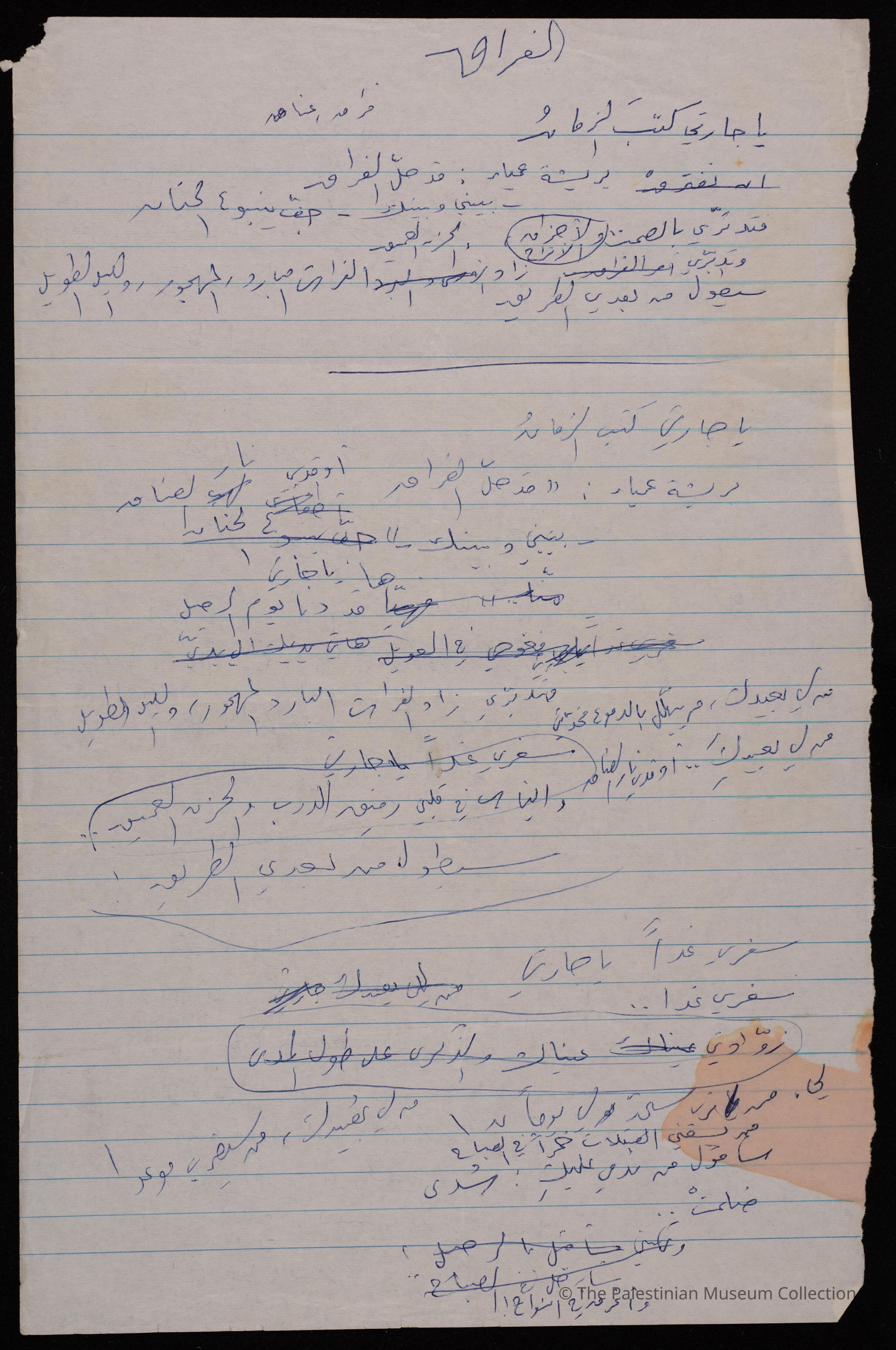 أبيات شعر بعنوان الفراق، تحتوي على صفحتين من أبيات الشعر، كتبت بخط يد الشاعر علي فودة.