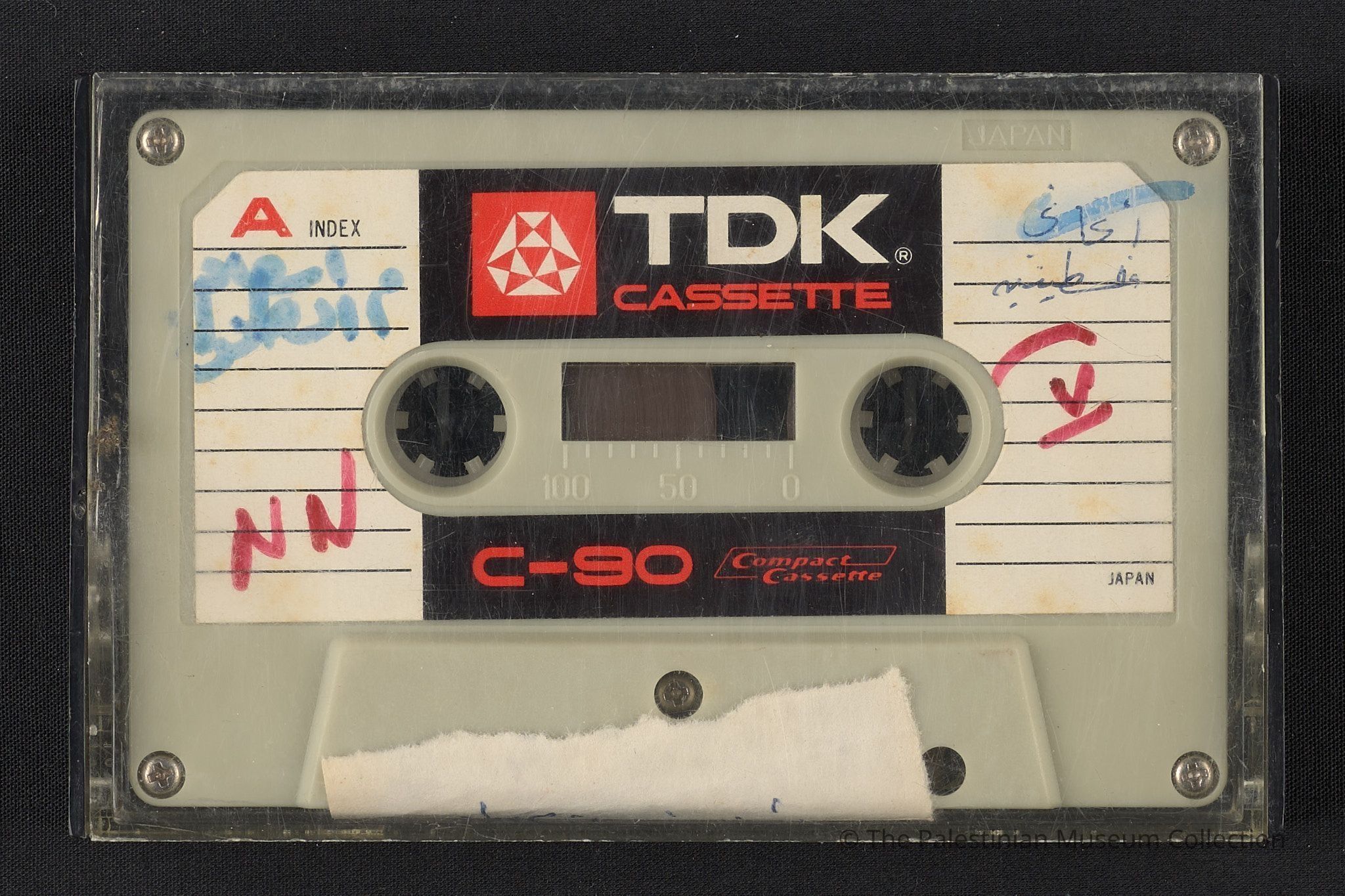شريط صوتي، كاسيت غنائي وطني ثوري فلسطيني ، بعنوان "أغاني فلسطينية"، باللغة العربية، الغلاف يحتوي على اسم الشريط باللغة العربية بخط اليد.Dimensions