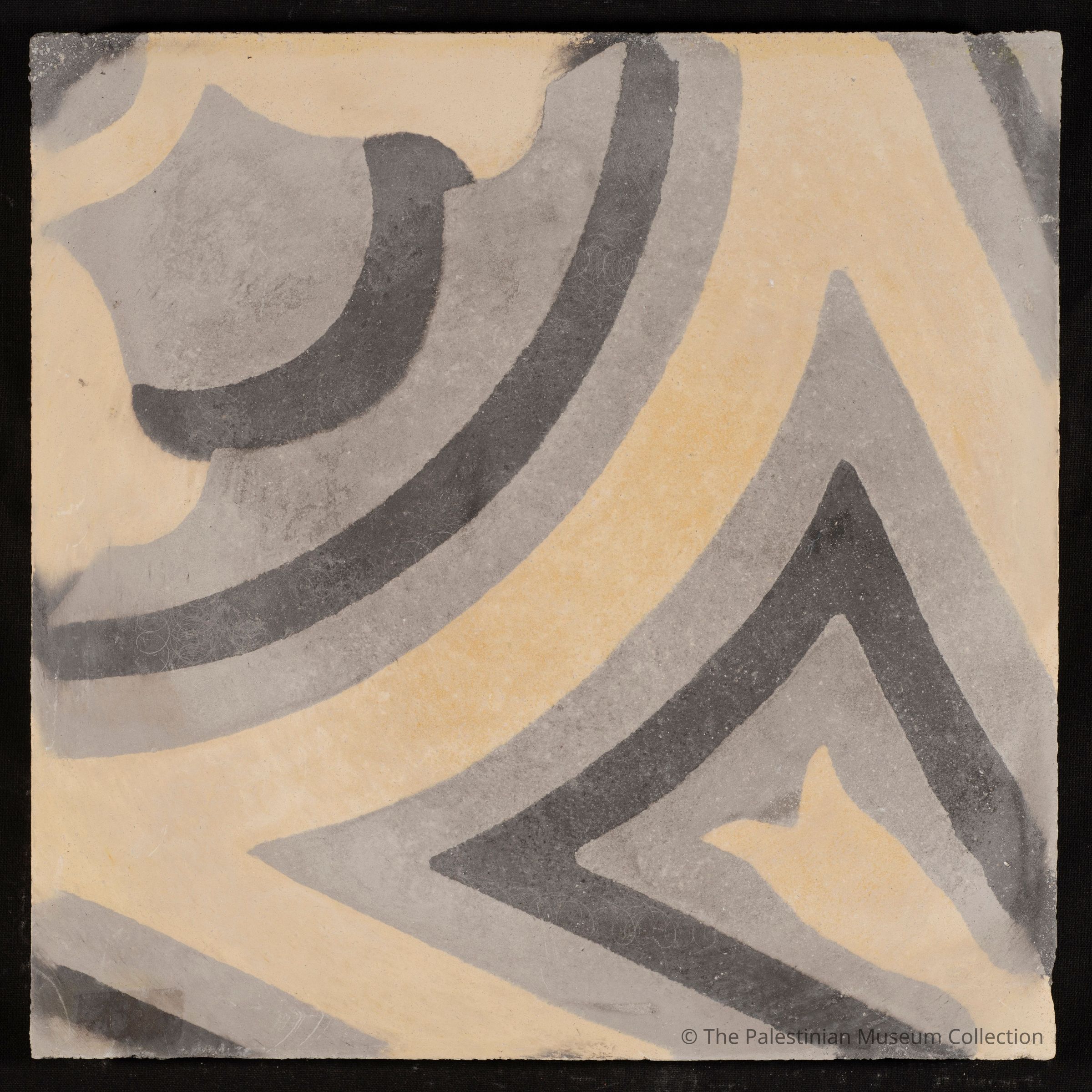 بلاطة إسمنتيّة ملوّنة بحجم 20 × 20 سم، تحمل تصميم "سجّادة البيروتية"، وهي نموذج حديث سُكبت في قالب يمتلكه مصنع أصلان للبلاط في نابلس.