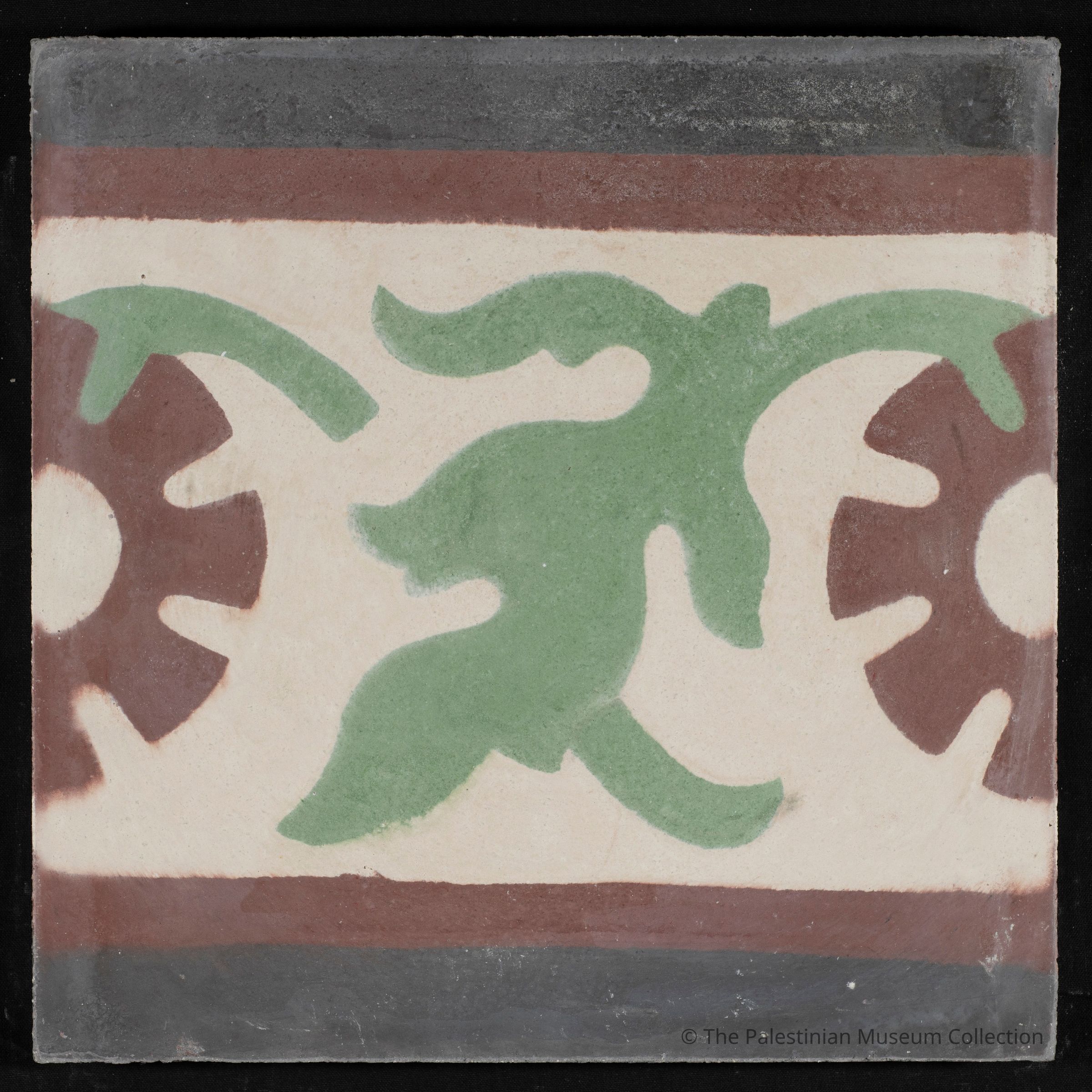 A 20 × 20 cm coloured cement tile featuring the "Reversed Star Zunnar (Border)" design. This tile is a contemporary reproduction, cast using an original mold from the Aslan Tile Factory in Nablus, which dates back to the 1920s.Made/Created