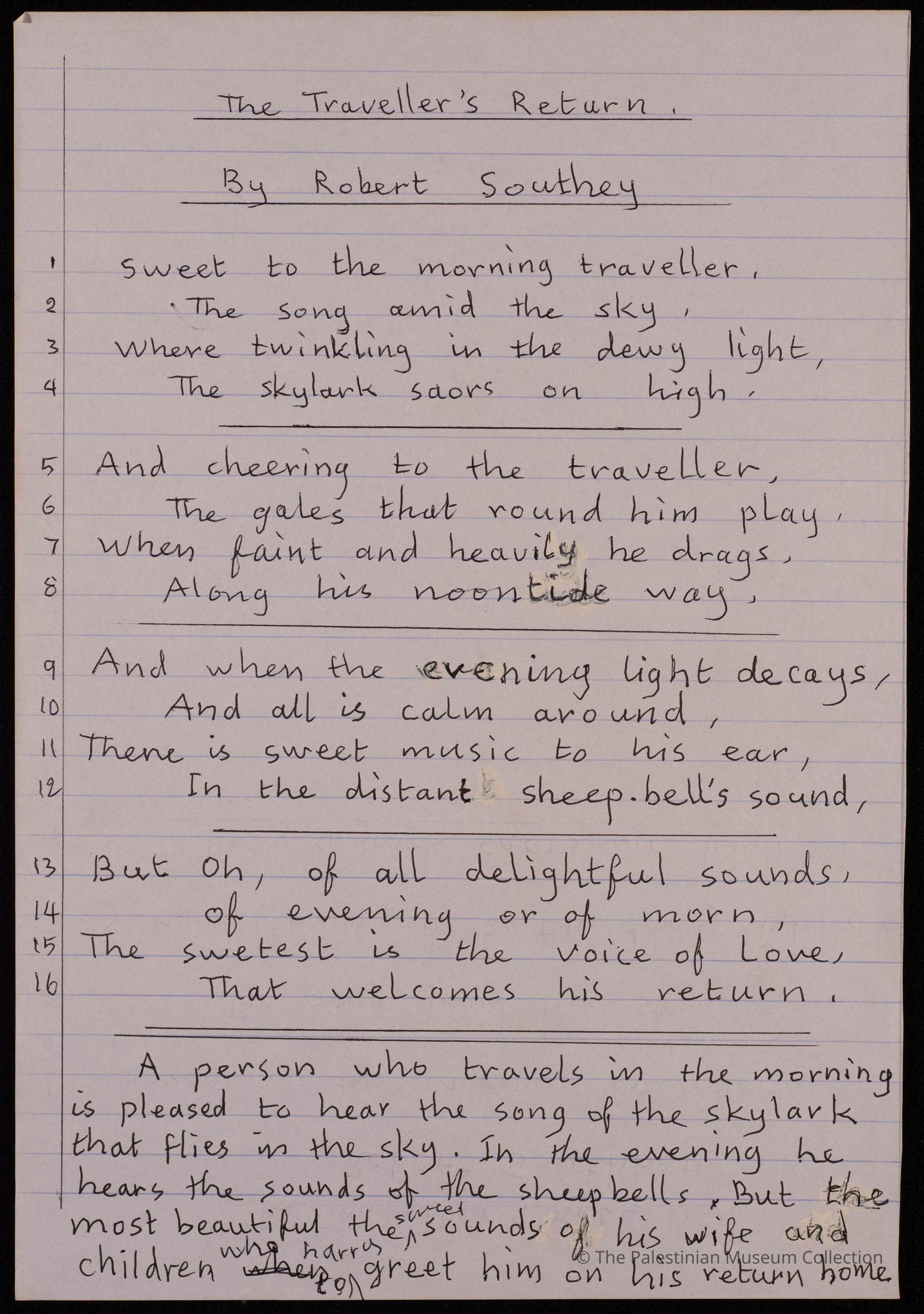 مخطوطة قصيدة باللغة الانجليزية بعنوان" عودة المسافر