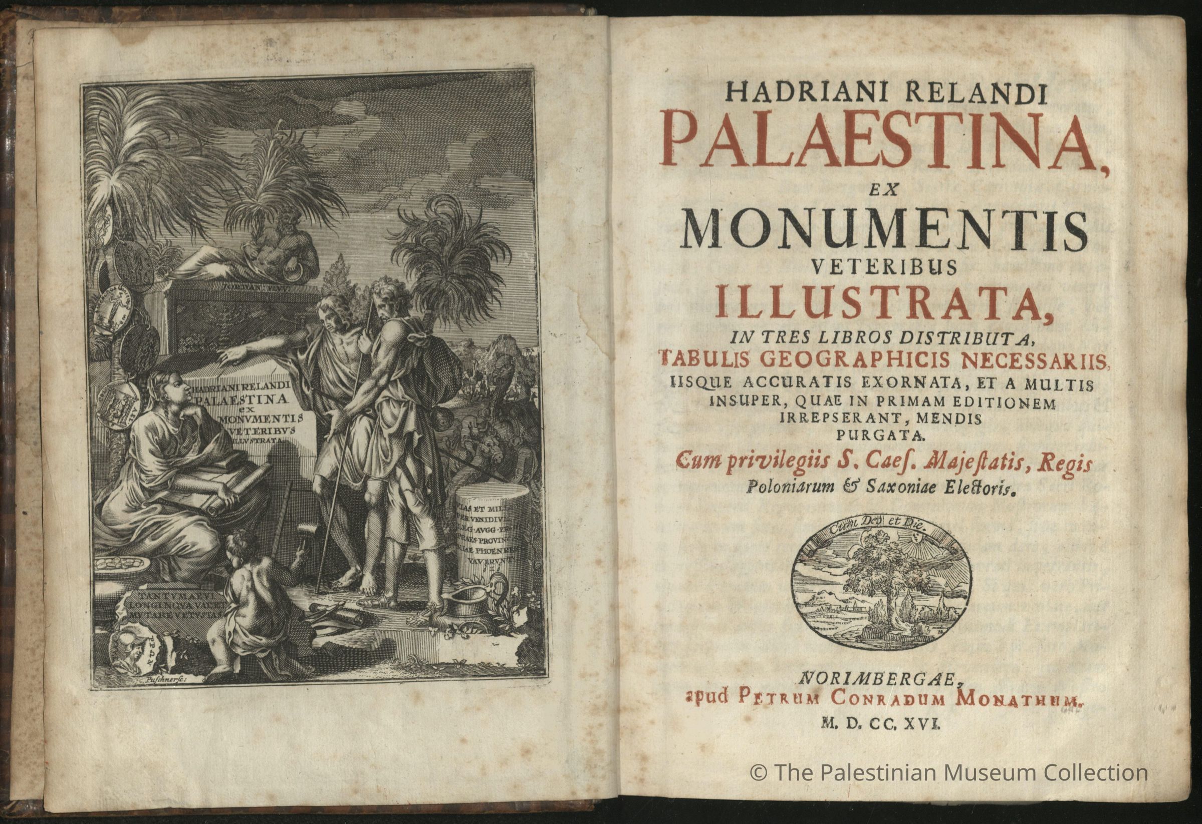 كتاب "المعالم التاريخية الفلسطينية" باللغة اللاتينية لواضعه هاردياني ريلاندي، يحتوي الكتاب على جداول جغرافية موصوفة بشكل دقيق، وتم تصحيحه بدقة من الأخطاء العديدة الموجودة في الطبعة الاولى صدر الكتاب عن بيتروس كونرادوس موناثم عام 1716 ويقع في 381 صفحة.