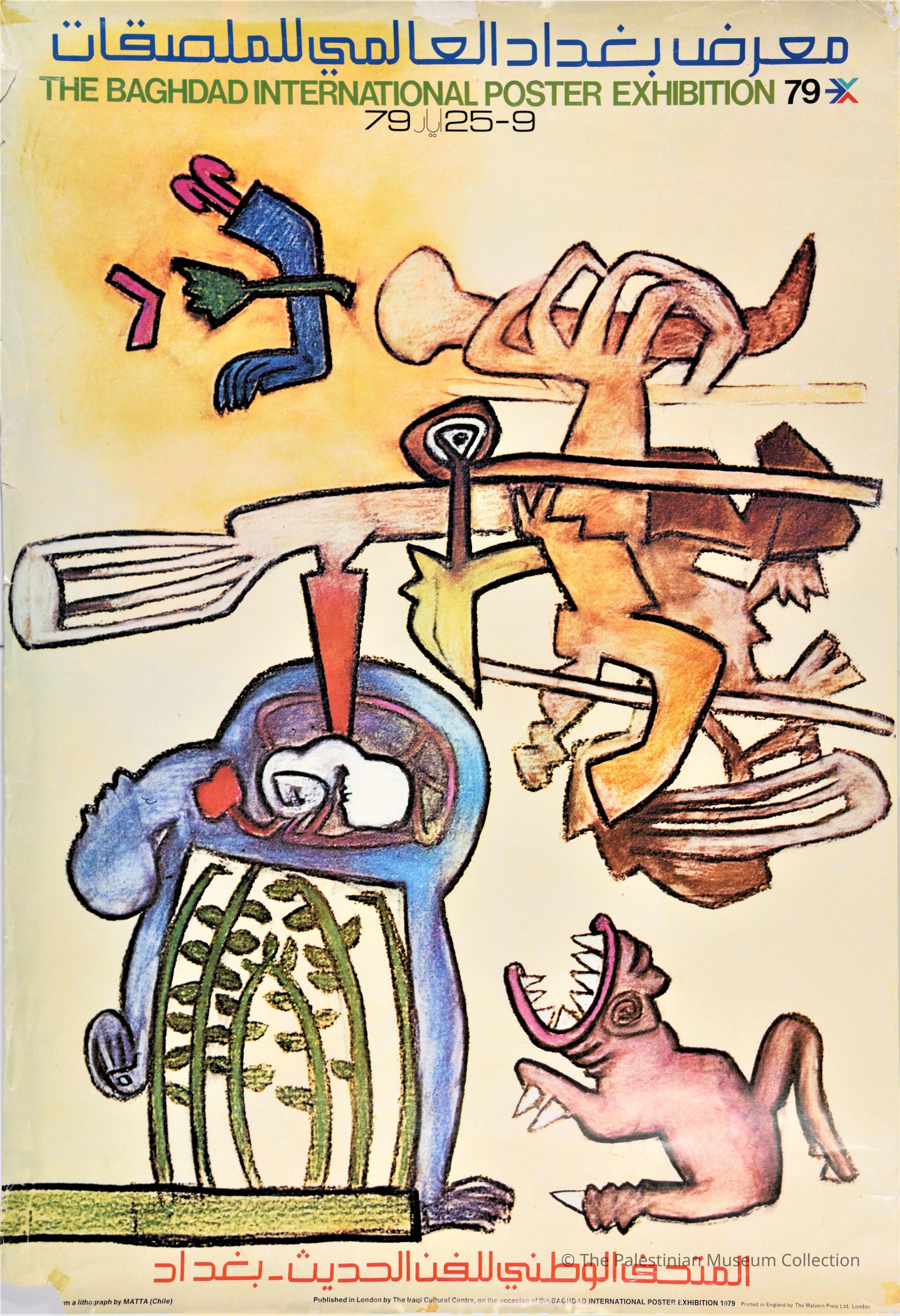 A promotional poster for the 1979 Baghdad International Poster Exhibition held between May 9th-25th. The poster was issued in London by the Iraqi Cultural Centre.Dimensions