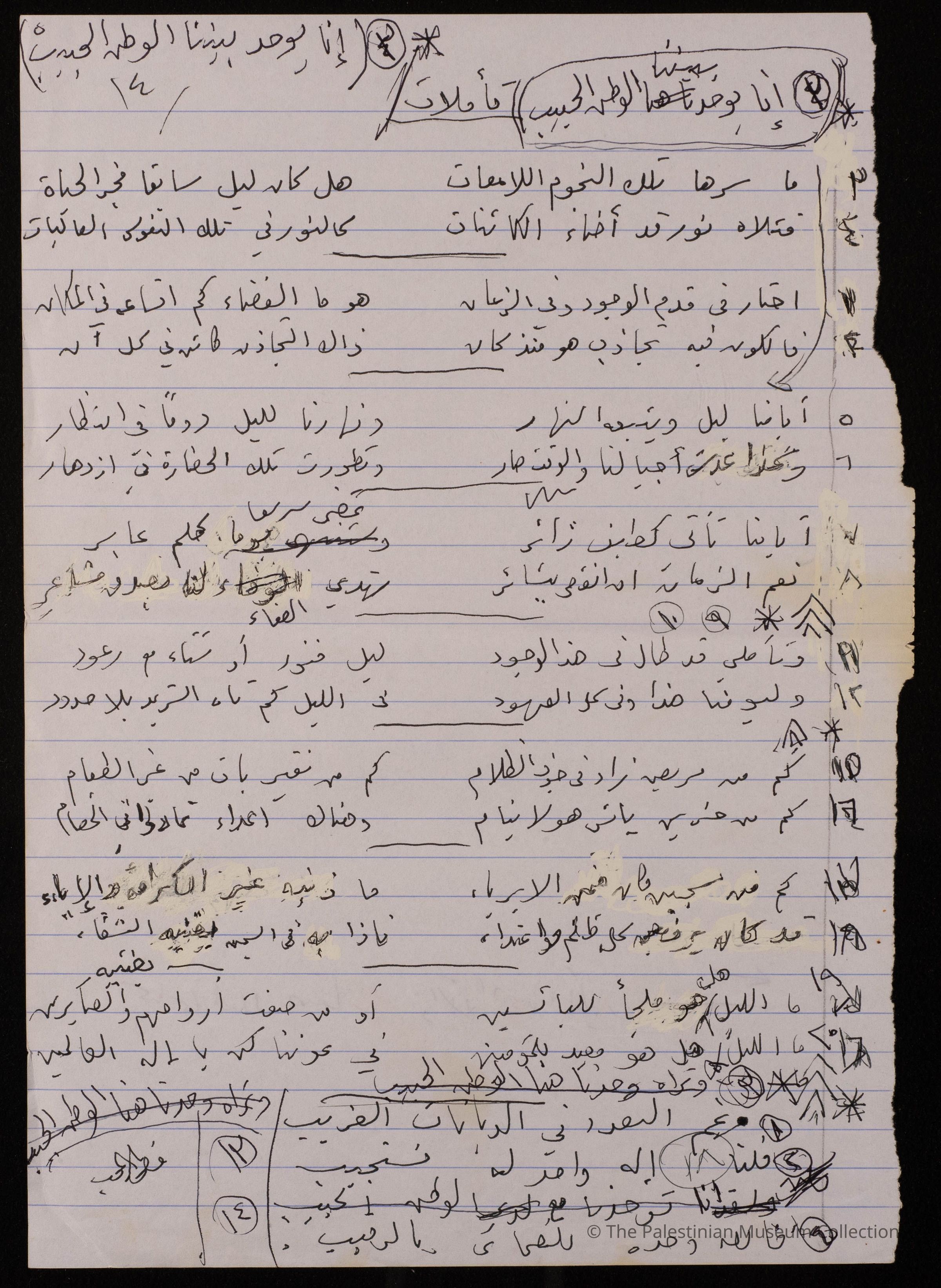 مخطوطة قصيدة باللغة العربية بعنوان" تأملات" للشاعرة فاطمة المحب، ولا تحمل القصيدة اية اشارة الى تاريخ كتابتها.