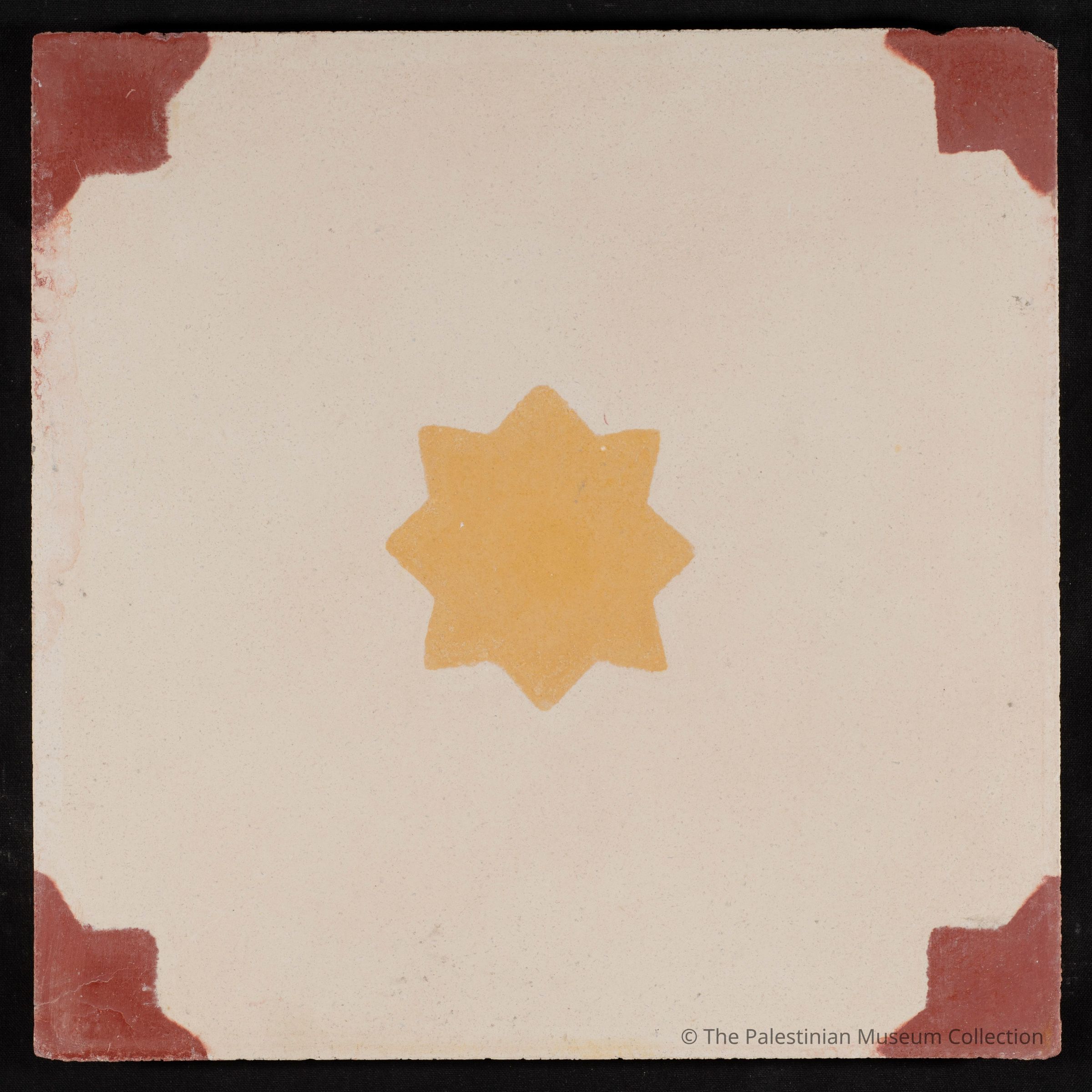 بلاطة إسمنتيّة ملوّنة بحجم 20 × 20 سم، وهي نموذج حديث سُكبت في قالب يمتلكه مصنع أصلان للبلاط في نابلس يعود إلى عشرينيات القرن العشرين.