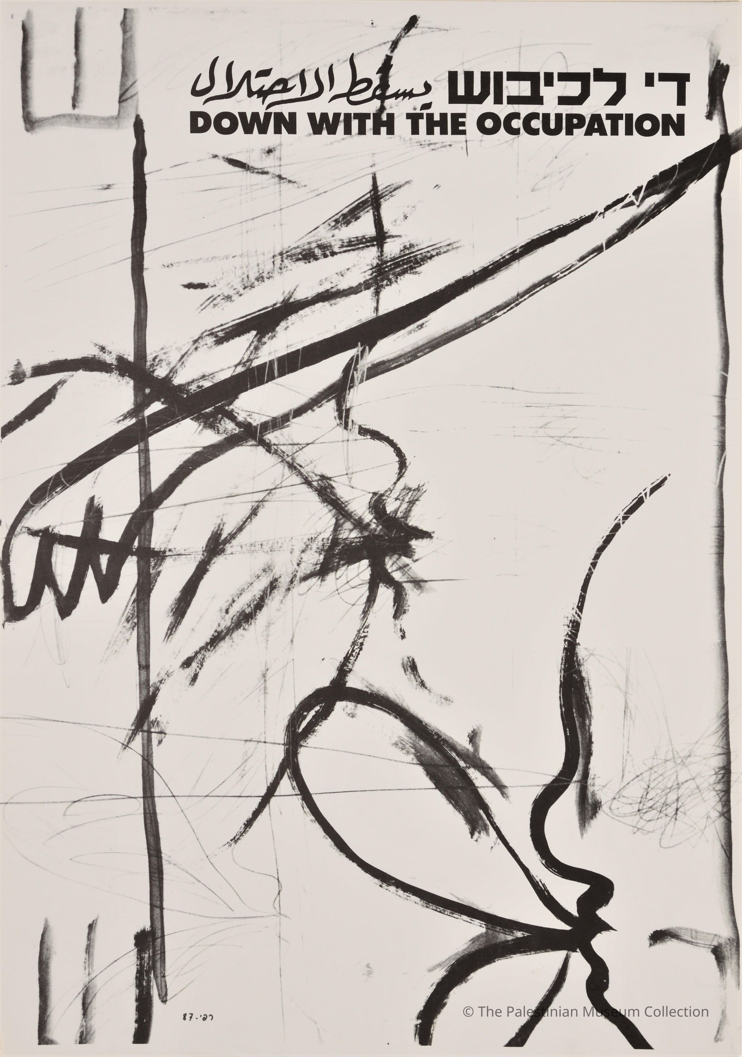 This poster by the artist Rafi Lavi was part of the 'Down with the Occupation' exhibition held in 1987 by the Association of Artists for Freedom of Expression in the El-Hakawati Theatre in Jerusalem to mark 20 years since the 1967 occupation of the West Bank. The exhibition included posters by Palestinian and Israeli artists.Dimensions