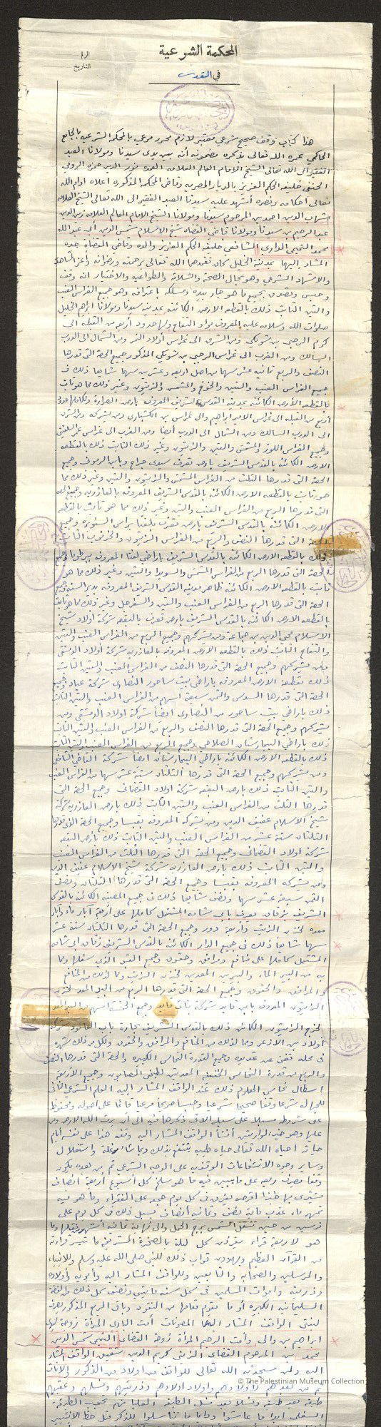 وثيقة محررة في المحكمة الشرعية في القدس، وهي كتاب وقف صحيح شرعي لازم.