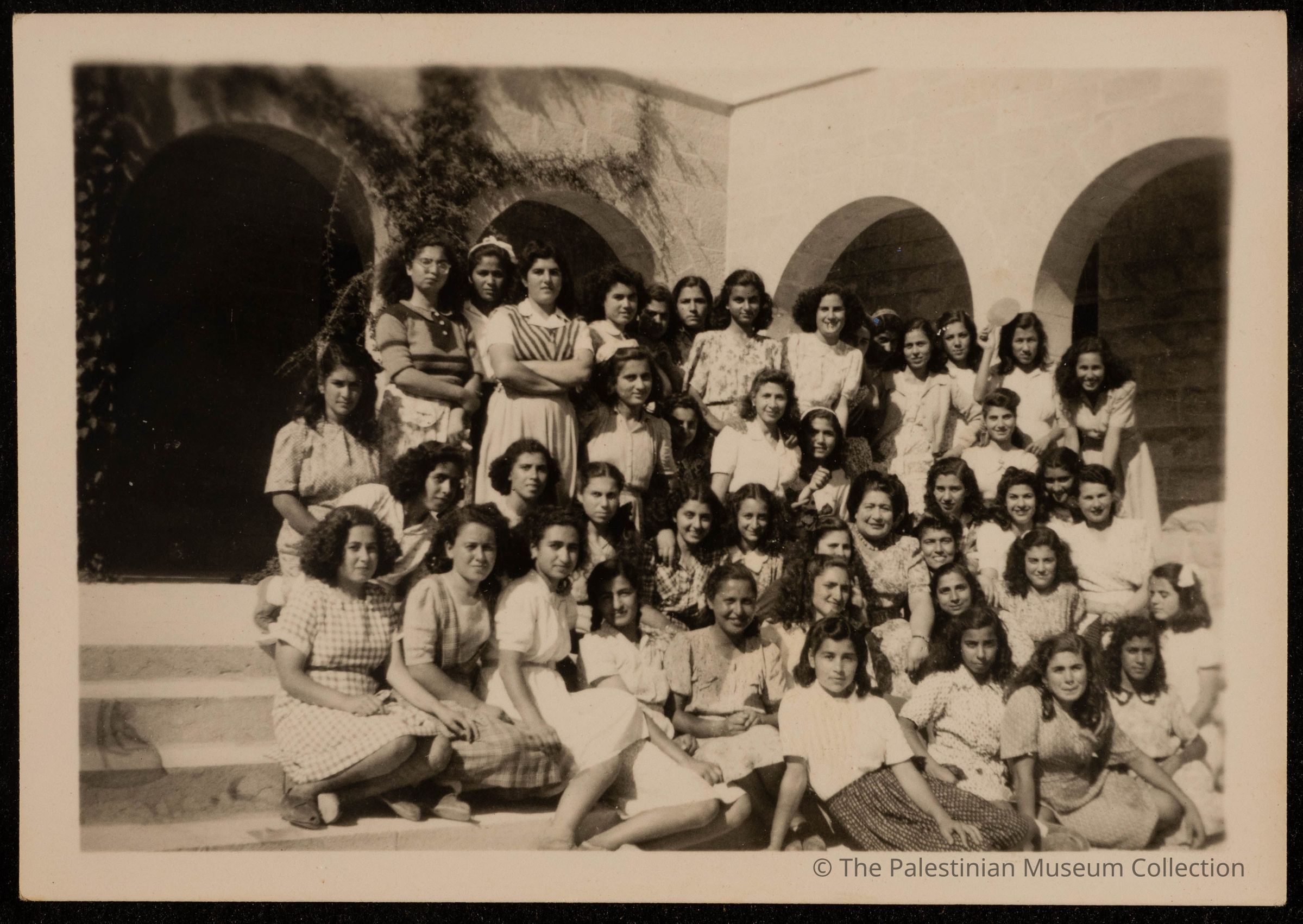 صورة للفنانة فاطمة المحب برفقة زميلاتها،في المعهد العالي للفنون الجميلة في القاهرة.