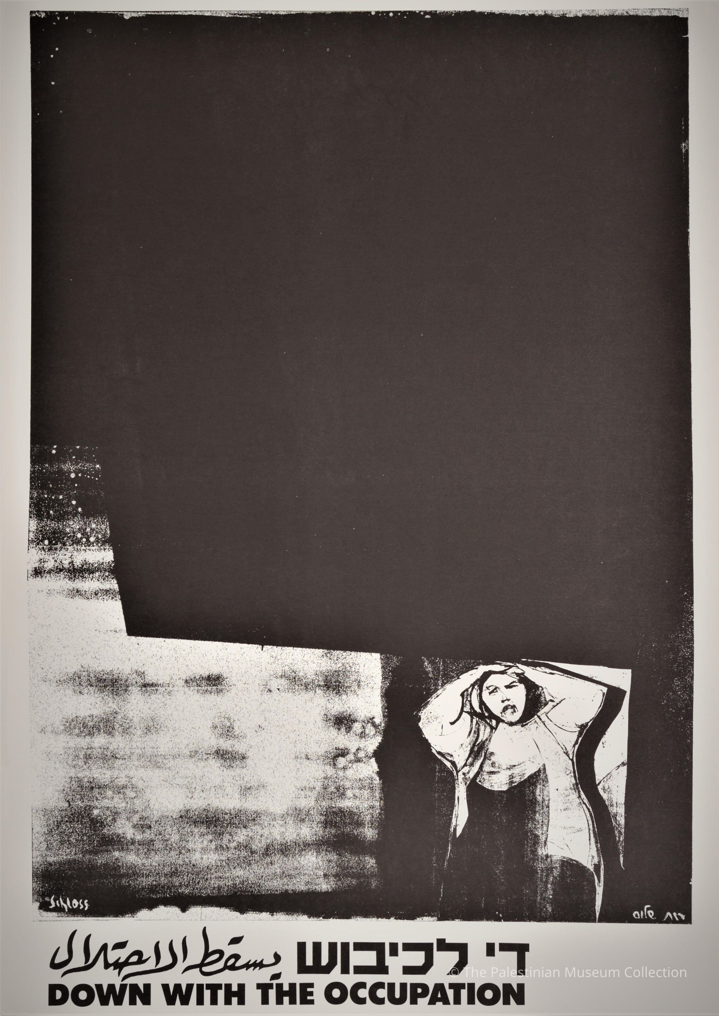 This poster by the artist Ruth Schloss was part of the 'Down with the Occupation' exhibition held in 1987 by the Association of Artists for Freedom of Expression in the El-Hakawati Theatre in Jerusalem to mark 20 years since the 1967 occupation of the West Bank. The exhibition included posters by Palestinian and Israeli artists.Dimensions