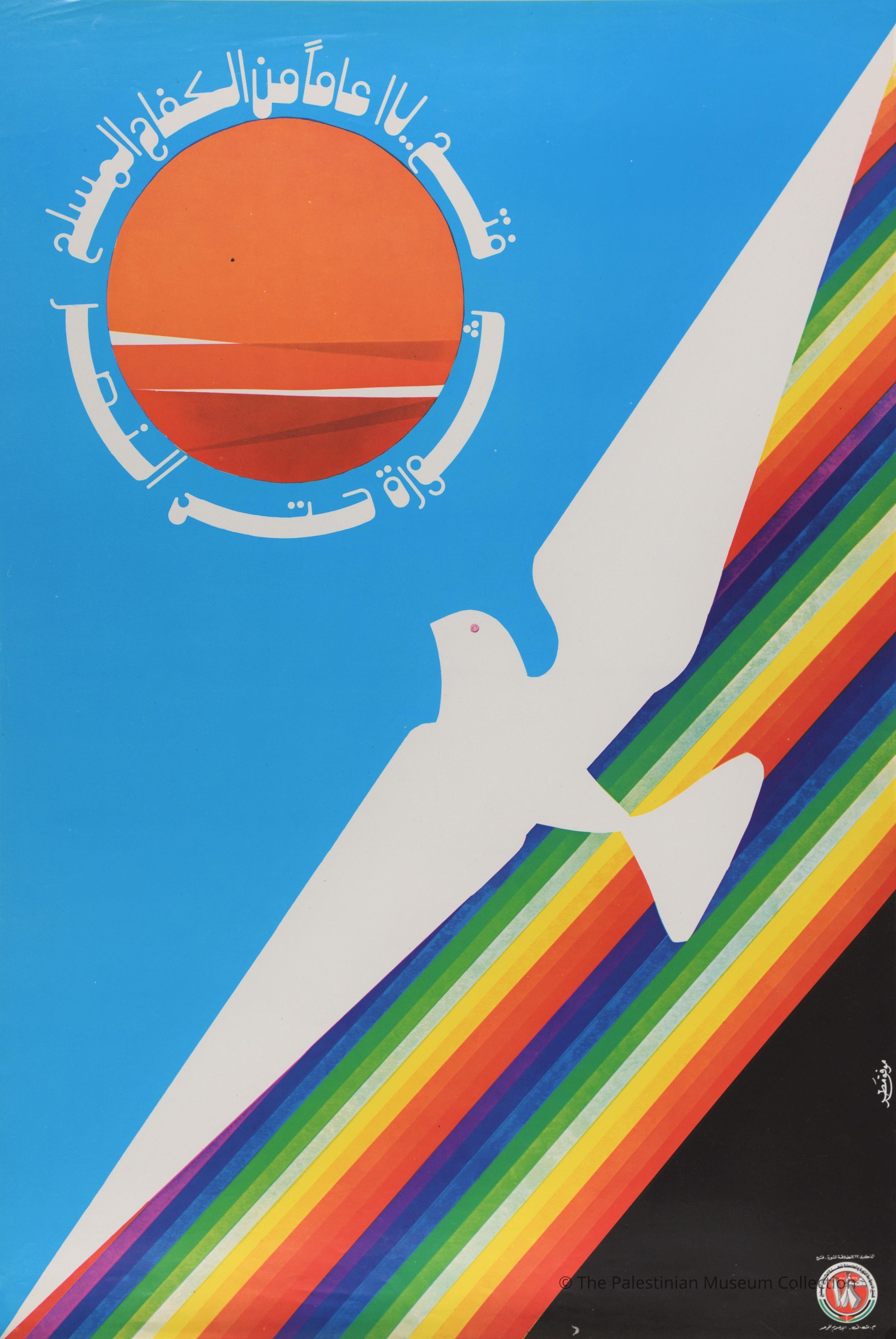 This poster entitled 'Fatah, 17 Years of Armed Struggle' was issued by the Unified Information Office of the Palestine Liberation Organisation (PLO) in 1982 to commemorate the 17th year anniversary of the launch of the Palestinian Revolution.