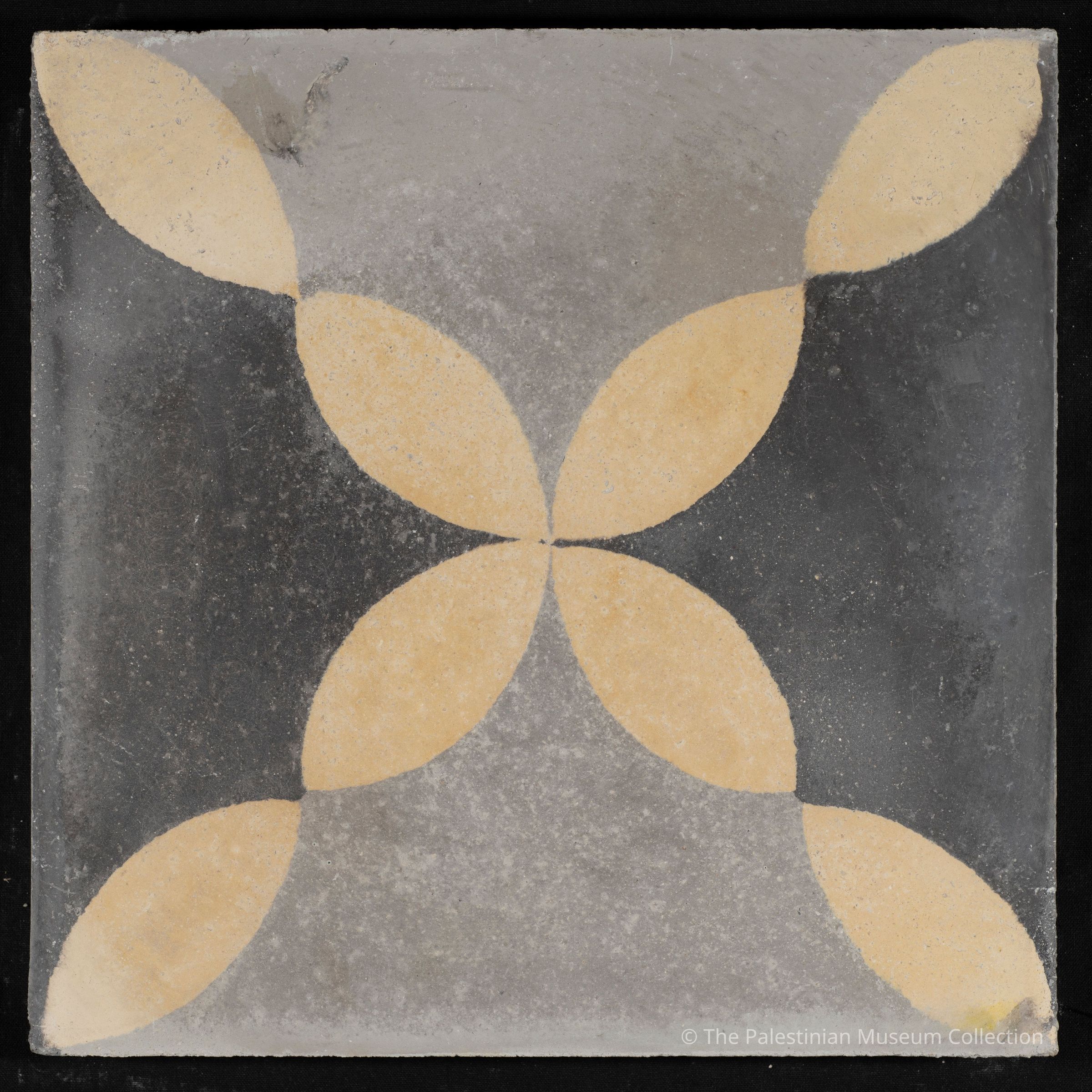 بلاطة إسمنتيّة ملوّنة بحجم 20 × 20 سم، تحمل تصميم "بيضة العصفور"، وهي نموذج حديث سُكبت في قالب يمتلكه مصنع أصلان للبلاط في نابلس يعود إلى عشرينيّات القرن العشرين.