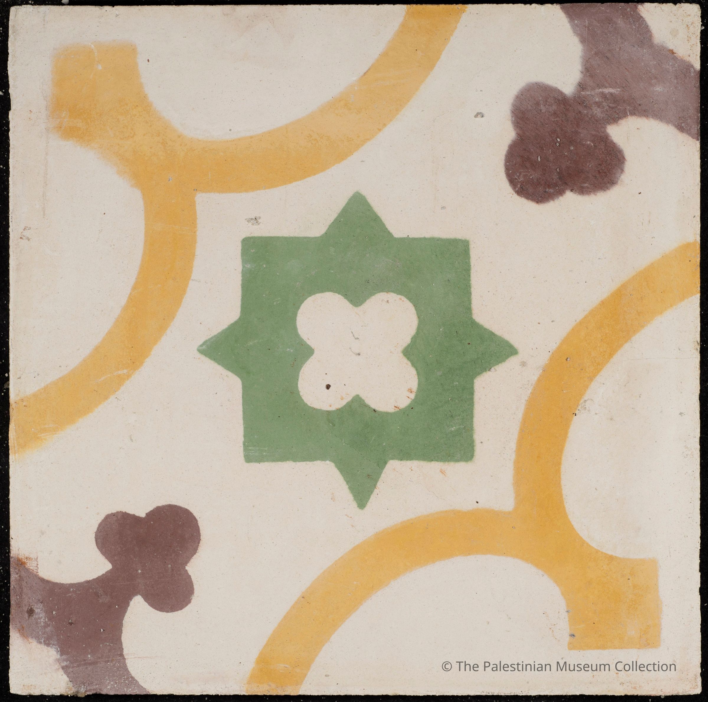 بلاطة إسمنتيّة ملوّنة بحجم 20 × 20 سم، تحمل تصميم "زنار الأردن"، وهي نموذج حديث سُكبت في قالب يمتلكه مصنع أصلان للبلاط في نابلس يعود إلى ثلاثينيات القرن العشرين.