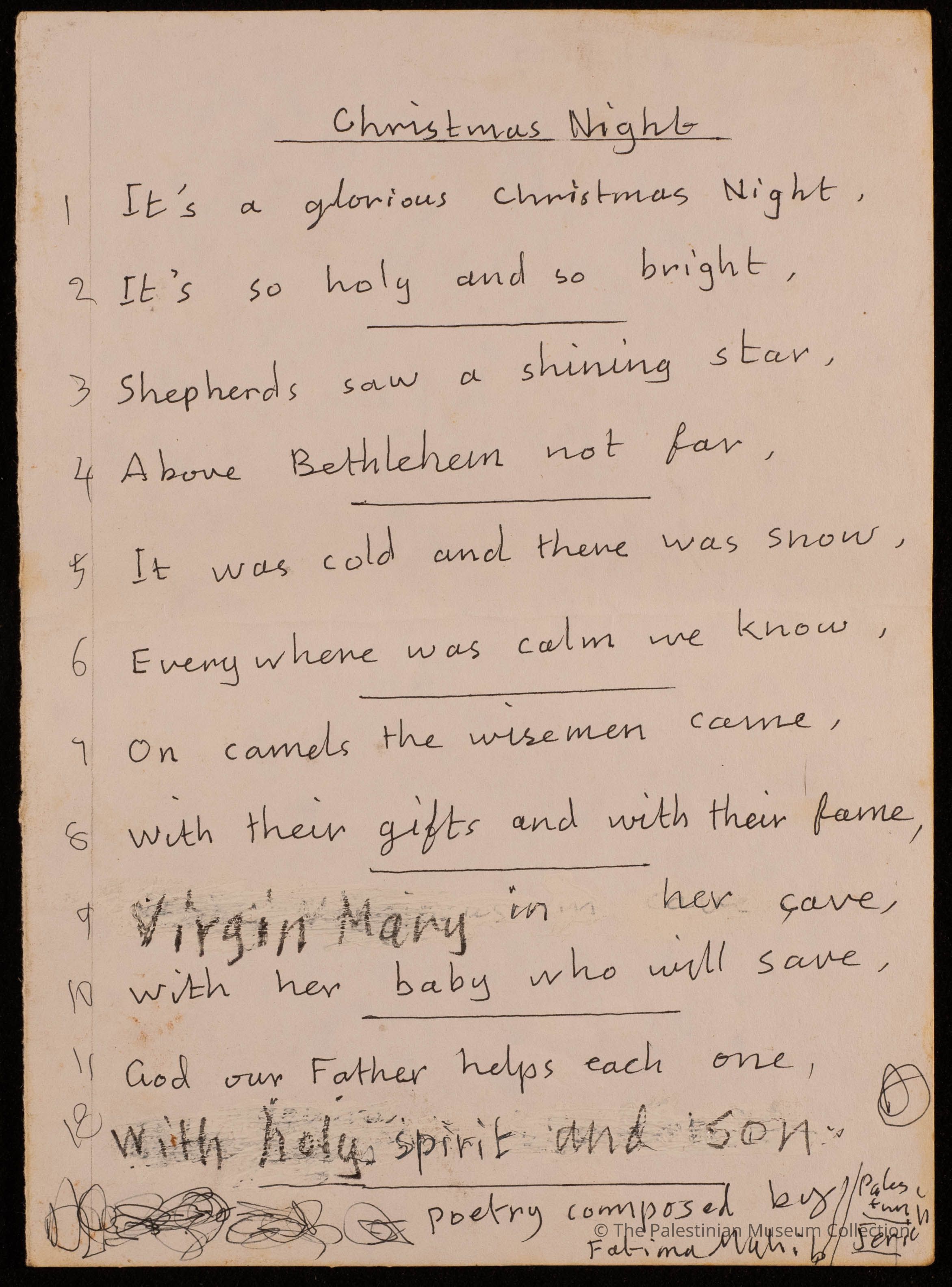 مخطوطة قصيدة باللغة الانجليزية بعنوان "ليلة الميلاد