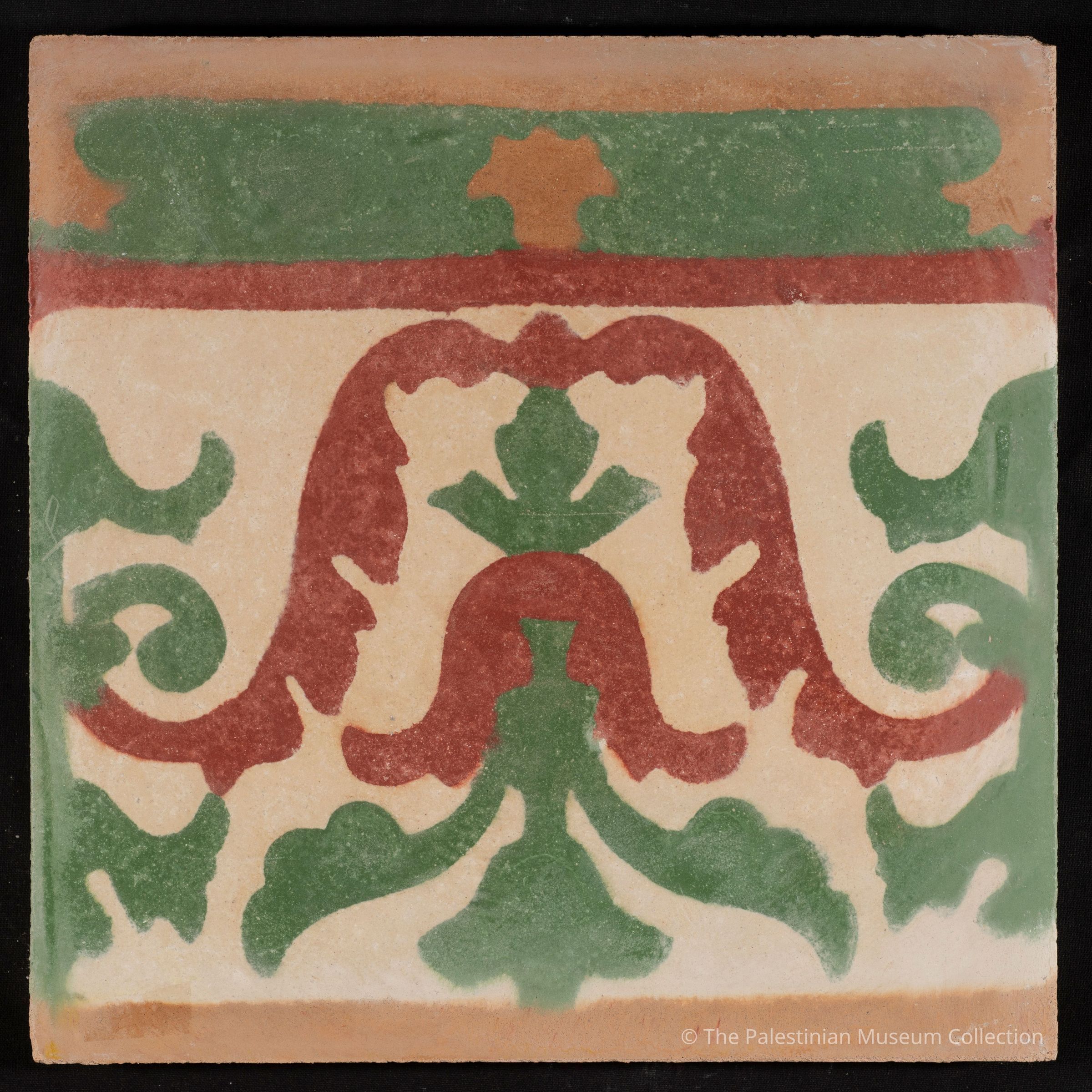 A 20 × 20 cm coloured cement tile. This tile is a contemporary reproduction, cast using an original mold from the Aslan Tile Factory in Nablus, which dates back to the 1890s.Made/Created