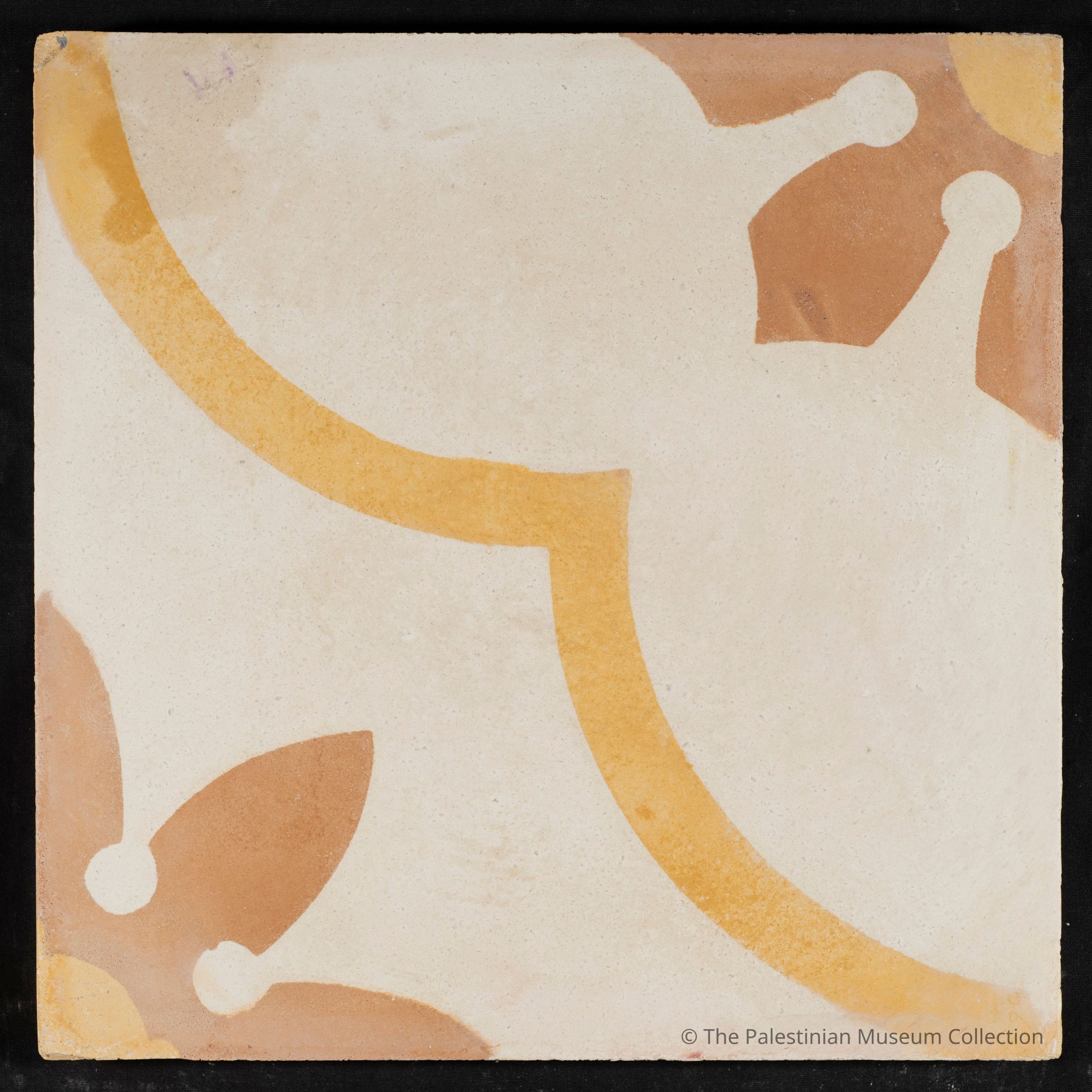 A 20 × 20 cm coloured cement tile. This tile is a contemporary reproduction, cast using an original mold from the Aslan Tile Factory in Nablus, which dates back to the 1940s.Made/Created