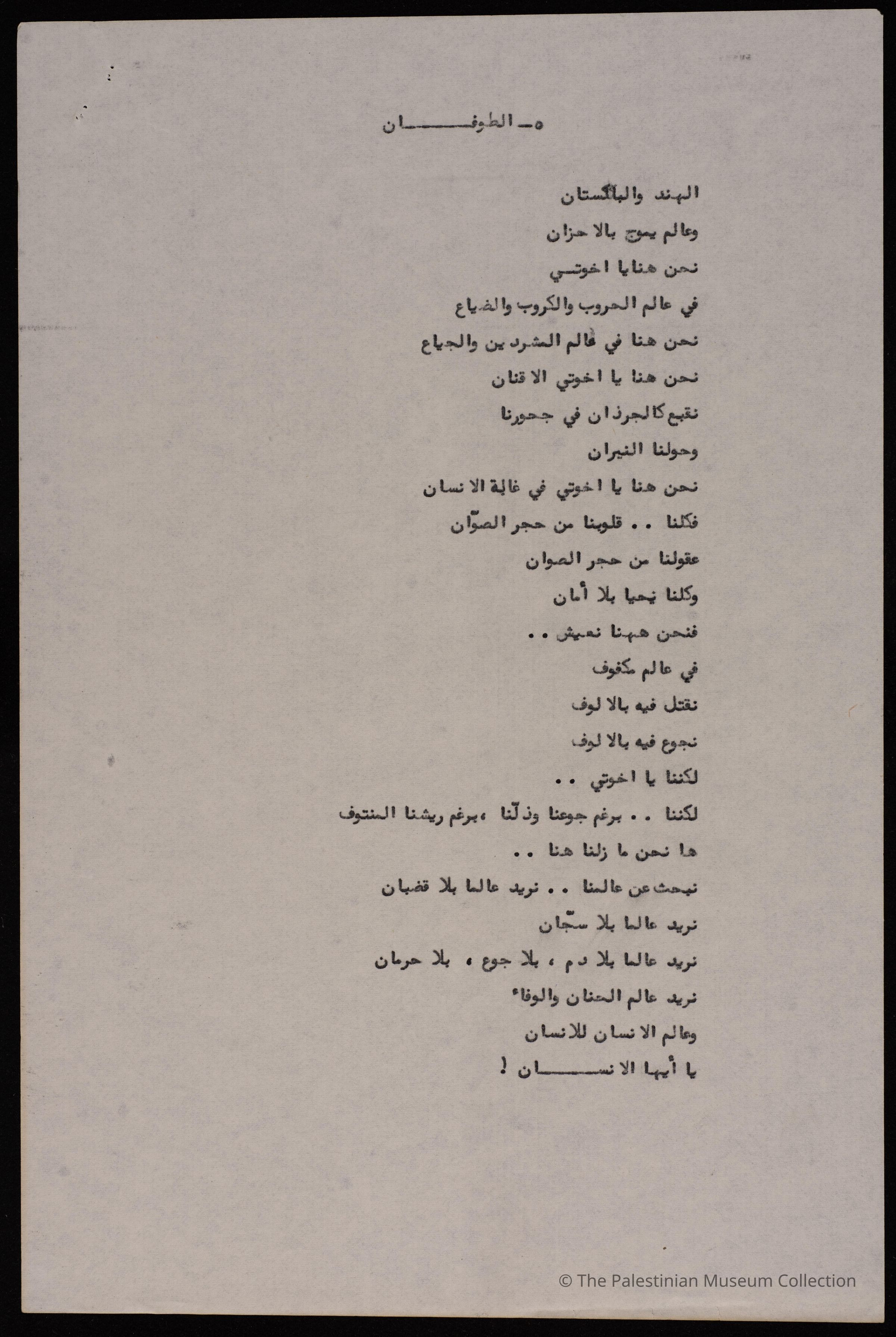 قصيدة نثر بعنوان "الطوفان" للشاعر علي فودة، يتحدث فيها عن الحرب بين الهند والباكستان. A prose poem by Ali Foda titled "Typhoon". It is about the India-Pakistan war.
