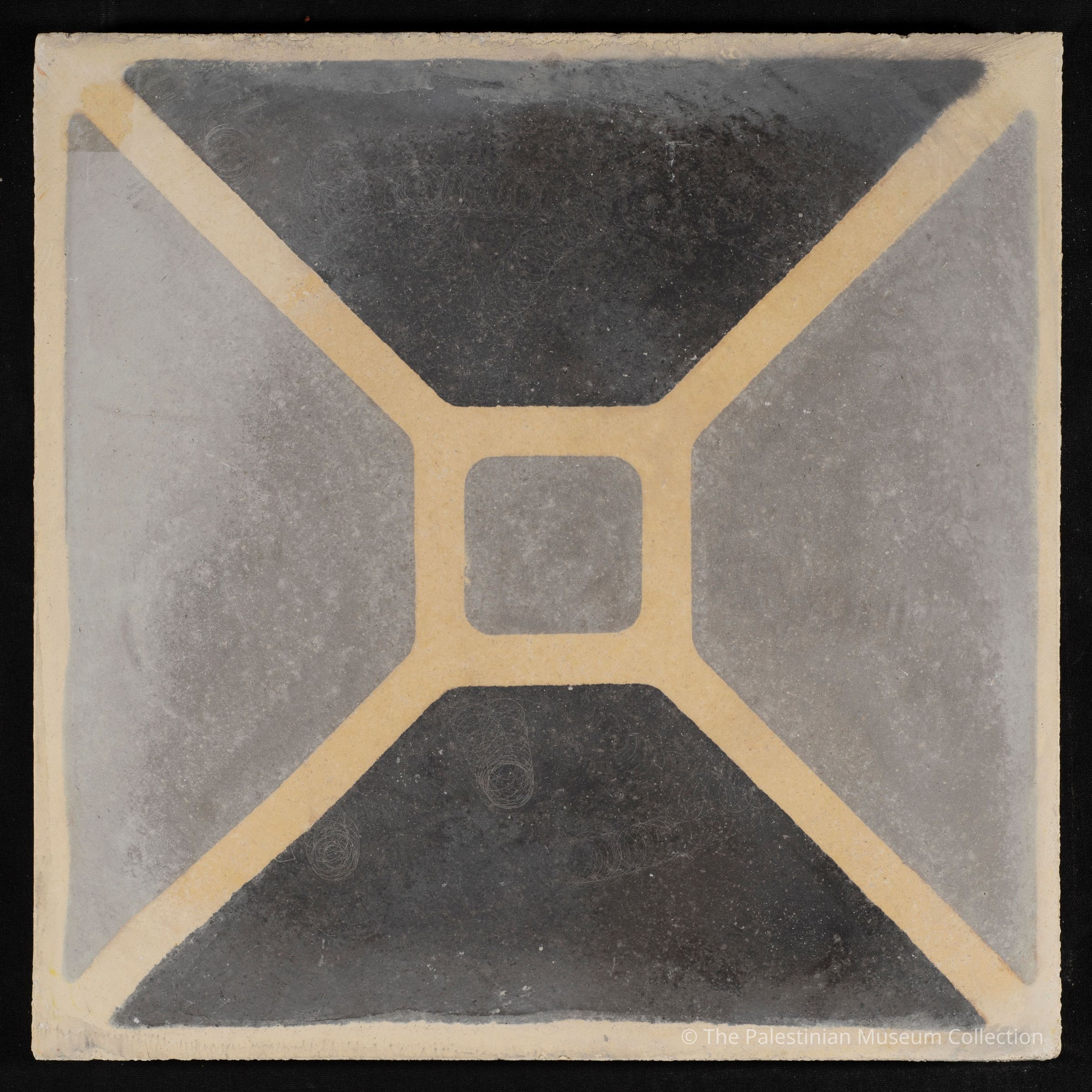 بلاطة إسمنتيّة ملوّنة بحجم 20 × 20 سم، وهي نموذج حديث سُكبت في قالب يمتلكه مصنع أصلان للبلاط في نابلس.