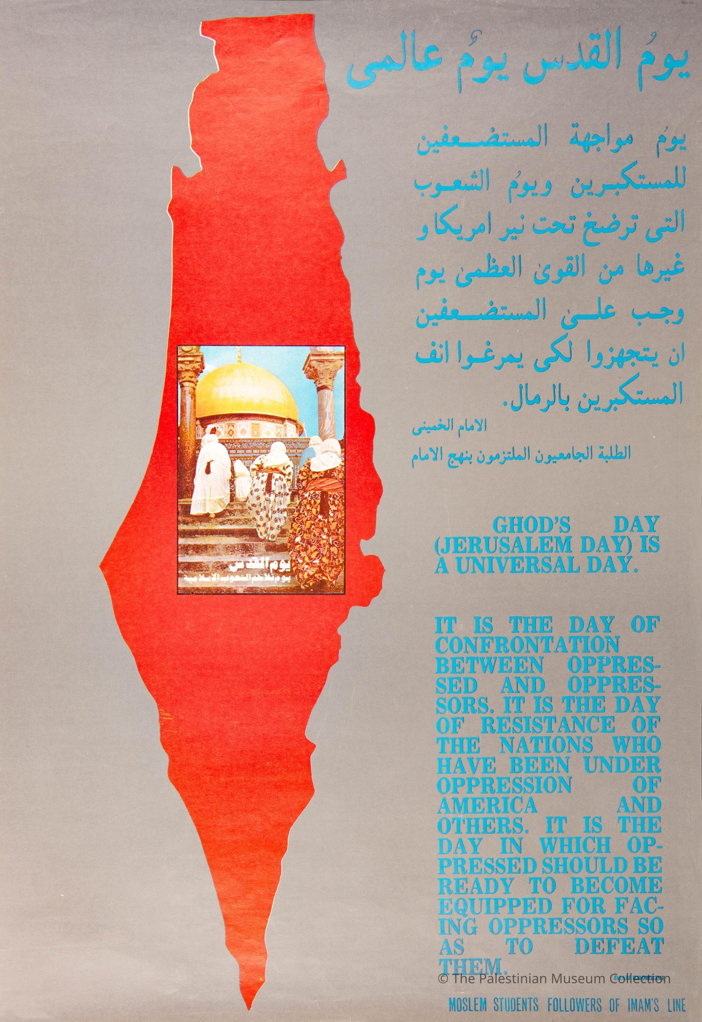 A poster entitled 'Ghod's Day (Jerusalem Day) is a Universal Day' issued by the Moslem Students Followers of Imam's Line in 1979.