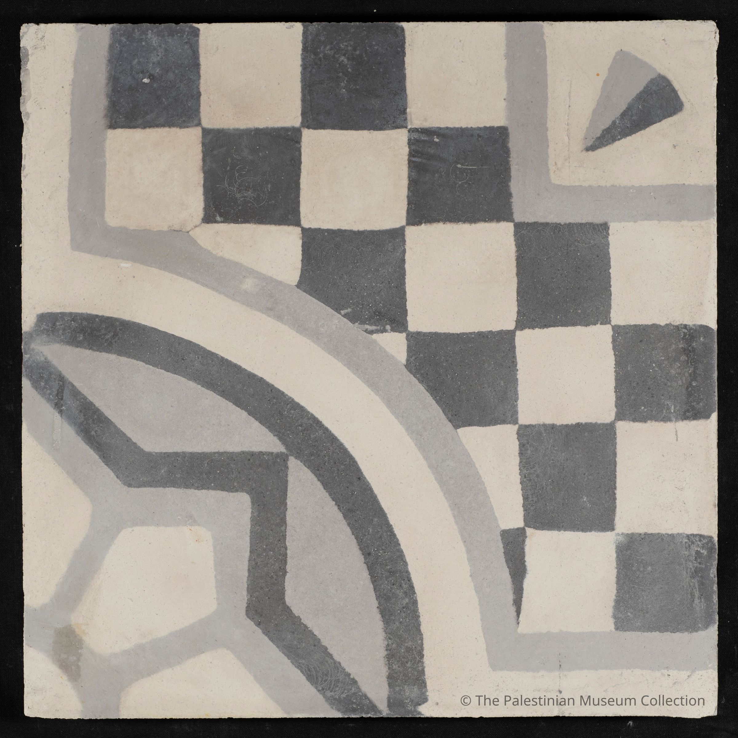 بلاطة إسمنتيّة ملوّنة بحجم 20 × 20 سم، وهي نموذج حديث سُكبت في قالب يمتلكه مصنع أصلان للبلاط في نابلس يعود إلى عشرينيات القرن العشرين.