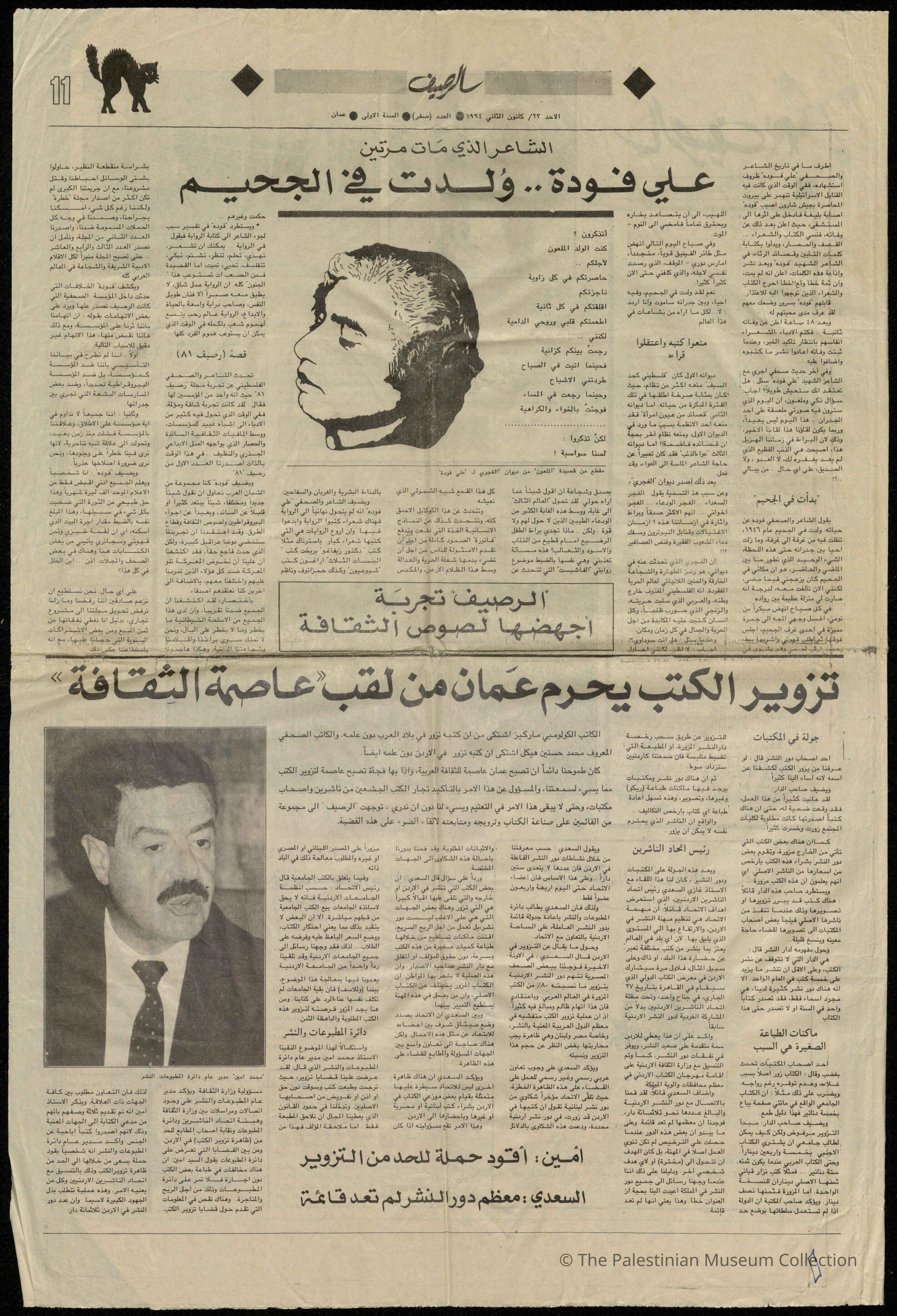 صفحة من جريدة الرصيف، تحتوي على مقالة ولدت في الحجيم للشاعر علي فودة.