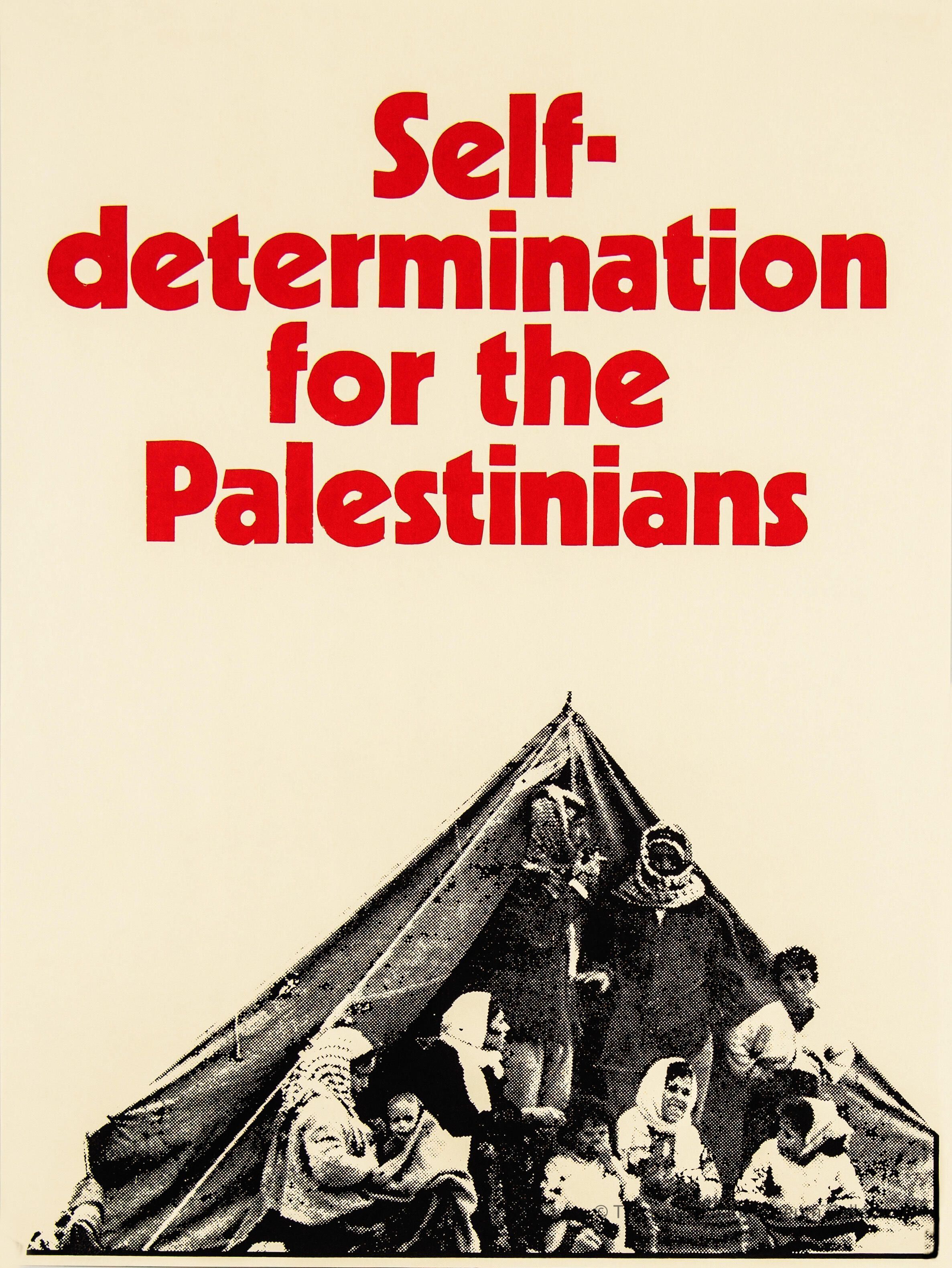 A poster entitled 'Self-determination for the Palestinians' issued by Palestinian activists in Australia in support of the Palestine Liberation Organization (PLO) in Australian universities.